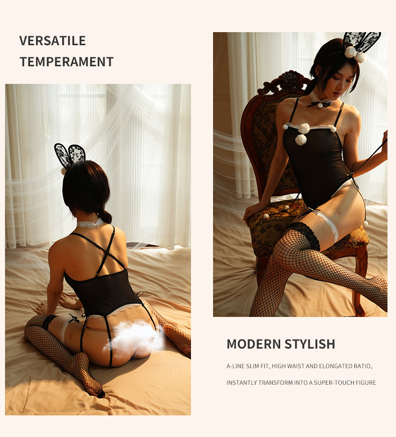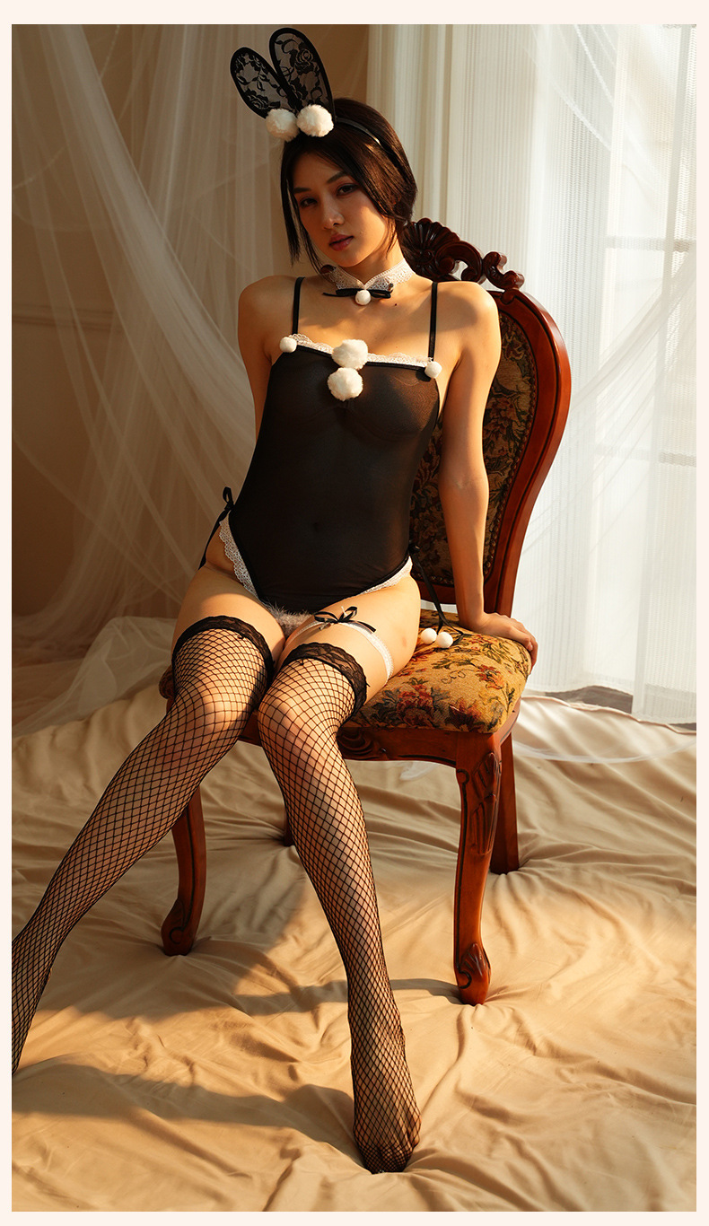 Lencería sexy seductora sexy open-end de las mujeres de juego de rol conejito uniforme traje de mucama más el tamaño de pijamas