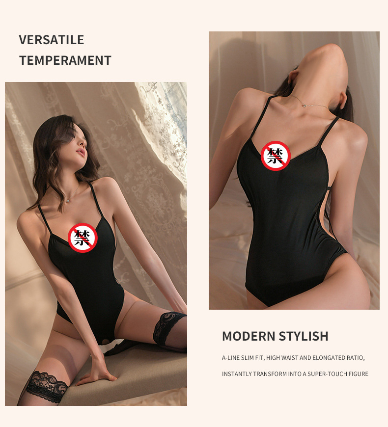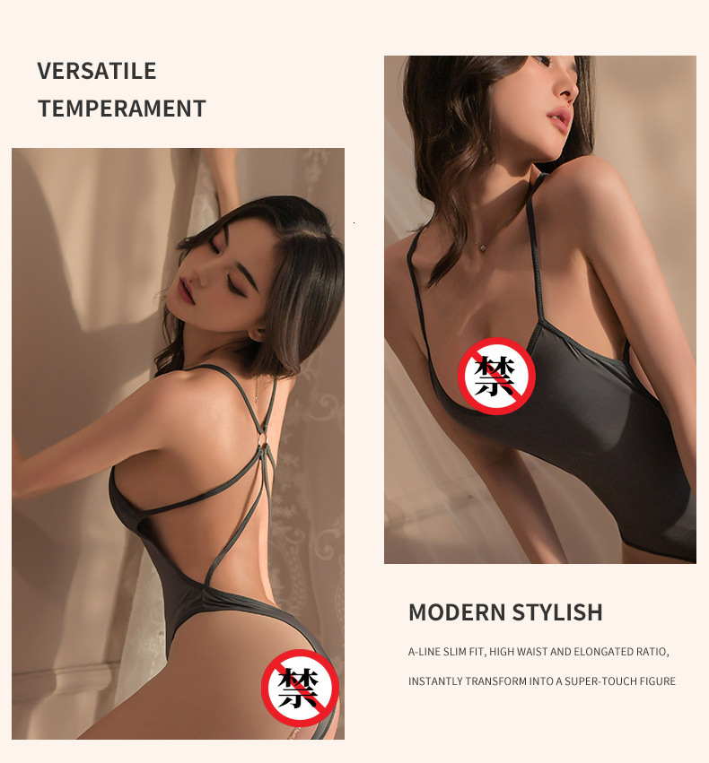 Lencería sexy mono ver-a través de la entrepierna abierta pijamas transparente encantadora tentación uniforme pasión mono Generación de cabello