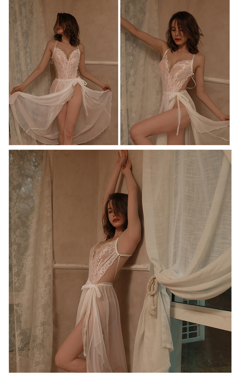 Europa y América nueva lencería sexy de las mujeres sexy encaje mono ver-a través de malla seductora falda pijamas traje