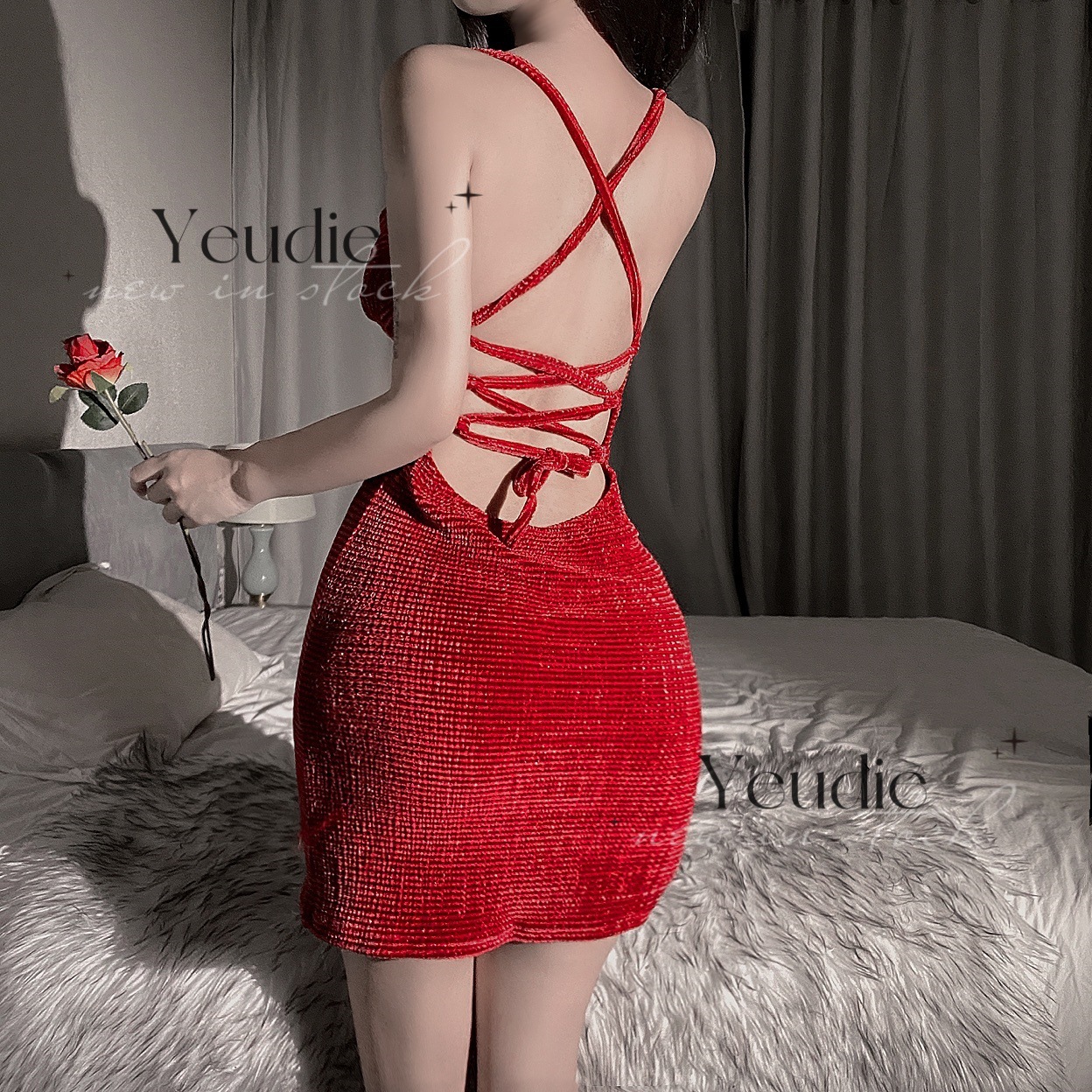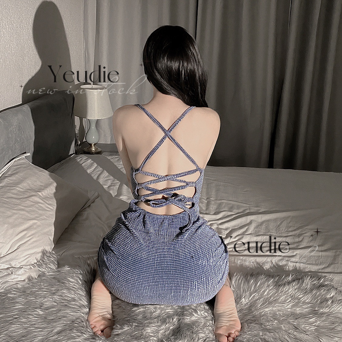 Lencería sexy chica sexy club nocturno correa de terciopelo bolsa de tubo falda de cadera espalda halter caliente en la cama túnica de burla