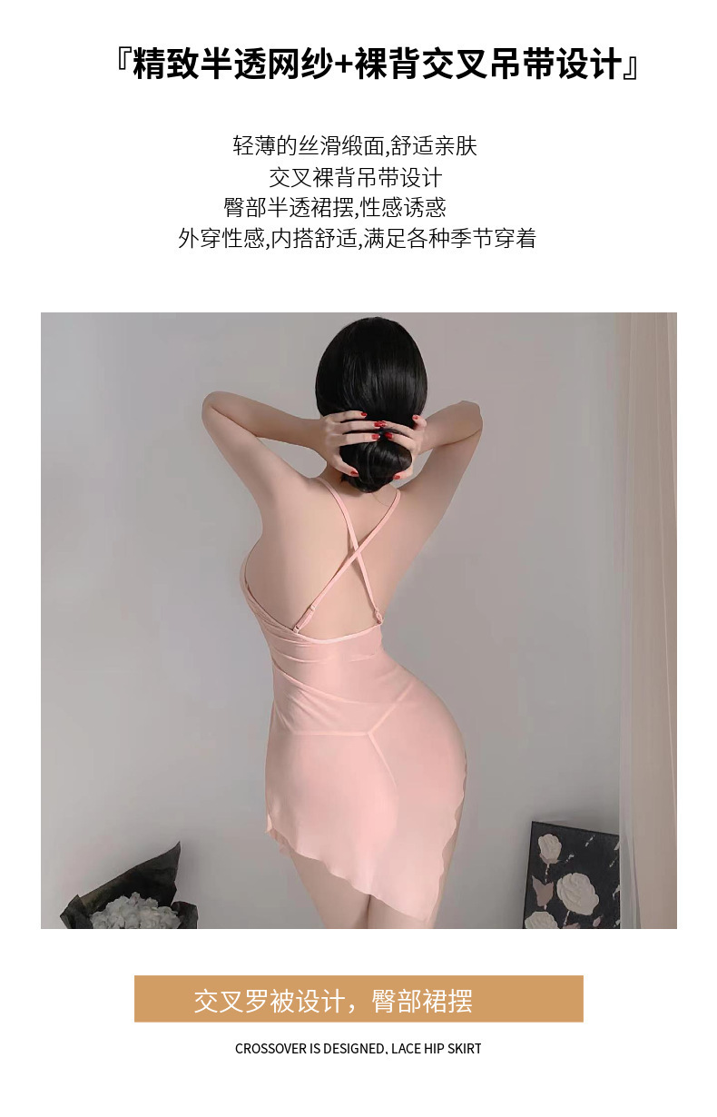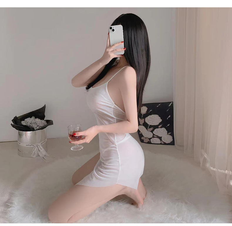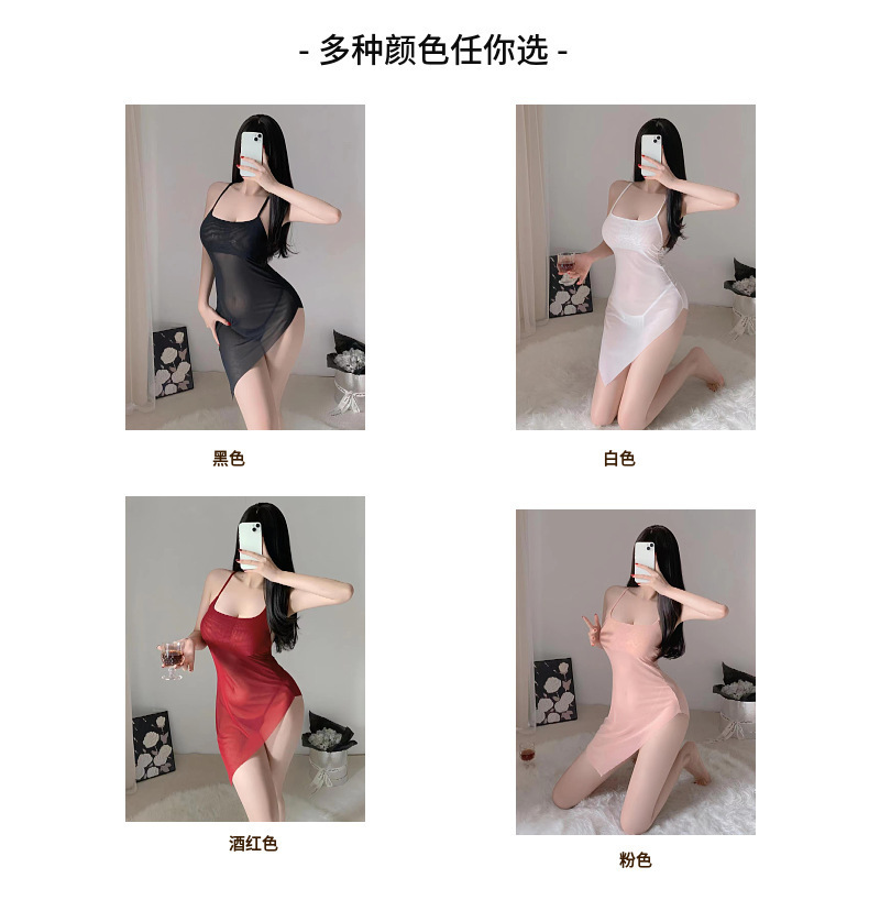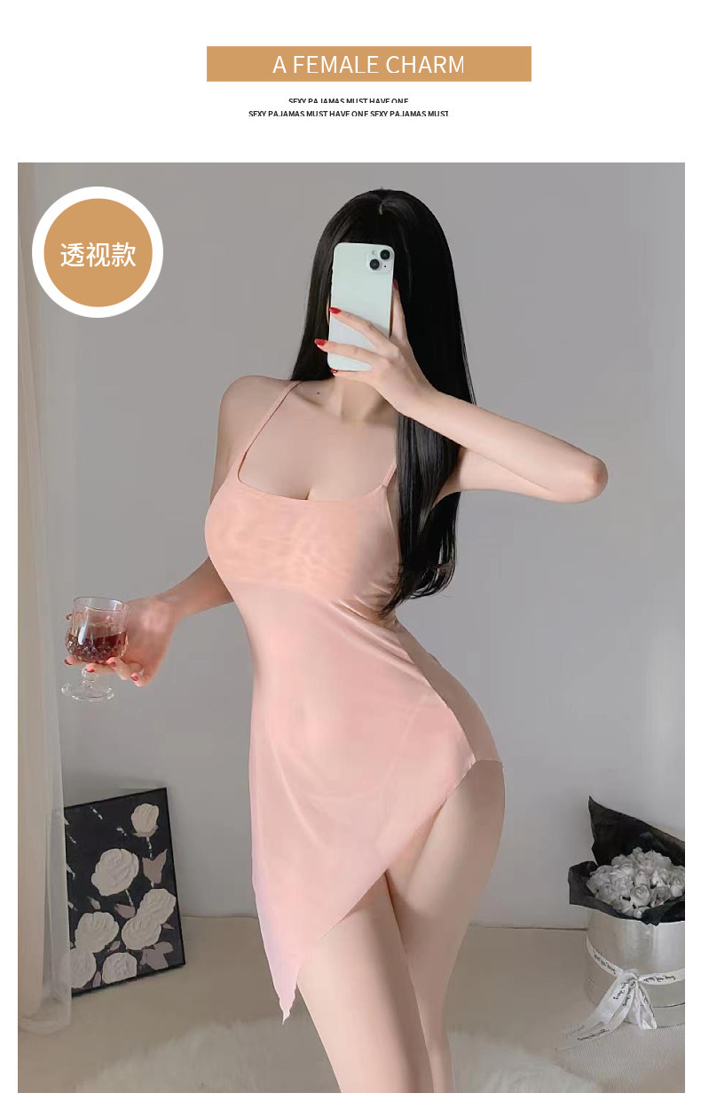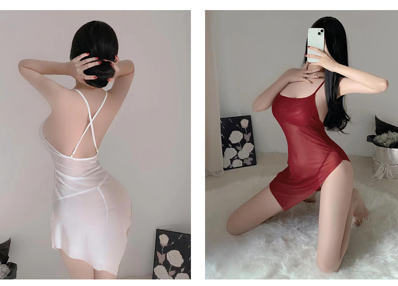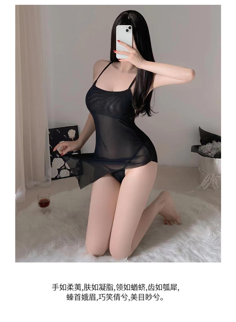 Lencería sexy camisón de tirantes sexy perspectiva caliente pijamas finos sin quitarse pasión uniforme de pecho pequeño cabello de una pieza