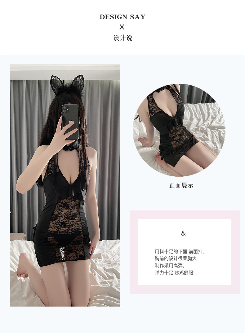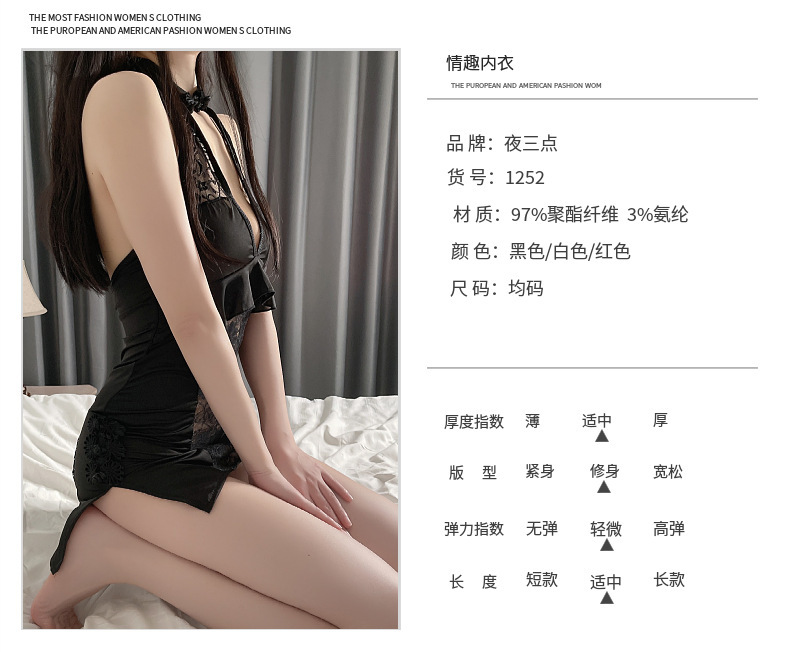 Lencería sexy de encaje cheongsam uniforme seductora Rocío transparente ropa pasión traje entrega la fábrica