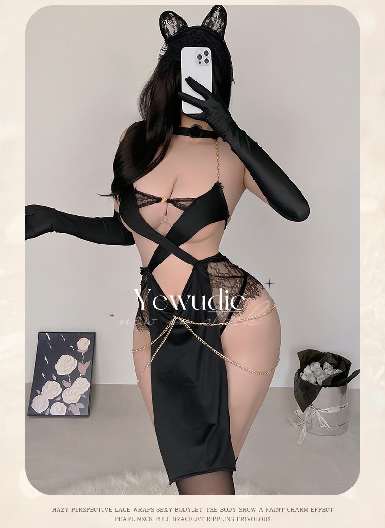 Lencería sexy gata egipcia mujer adorno de cadena de oro vestido de una pieza pasión sexy sexy uniforme personaje traje de tentación mujer
