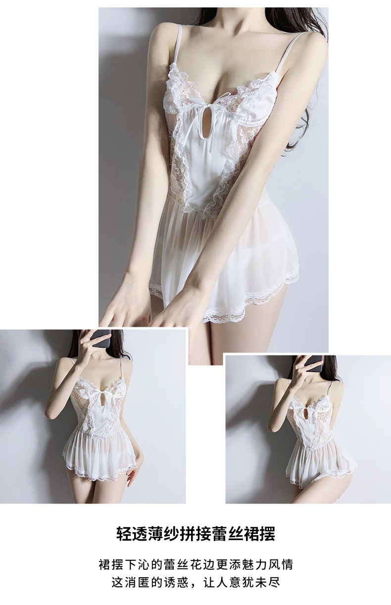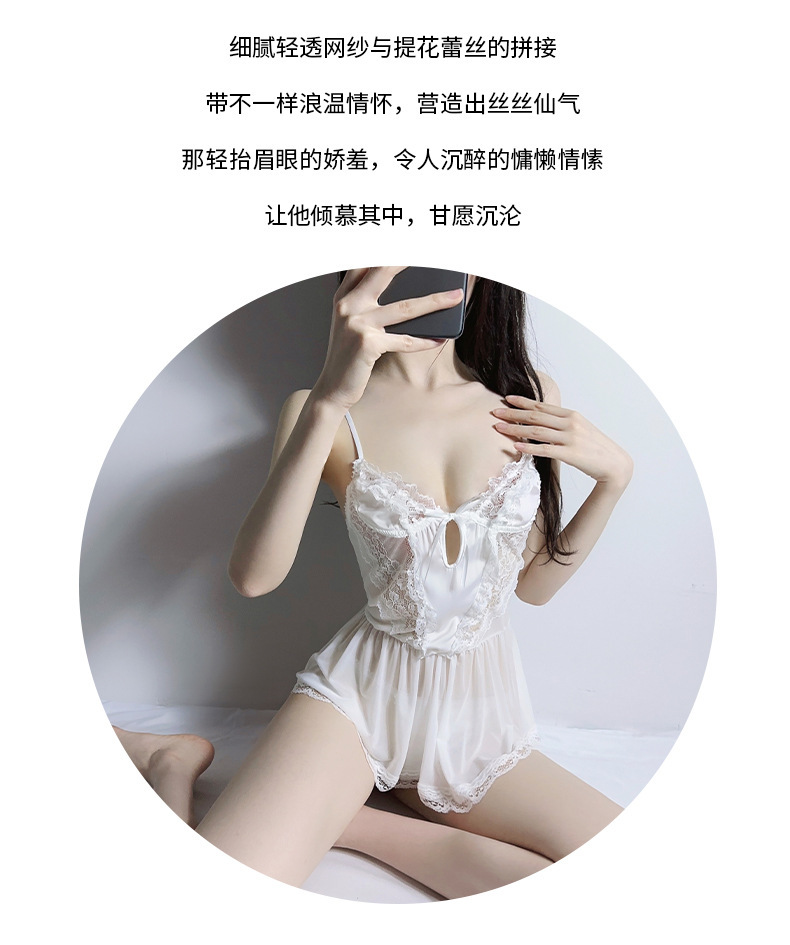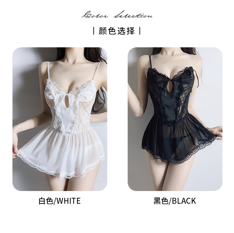 Lencería sexy hilo de red sexy perspectiva tentación dulce color sólido camisón traje de servicio a domicilio femenino cabello de una pieza