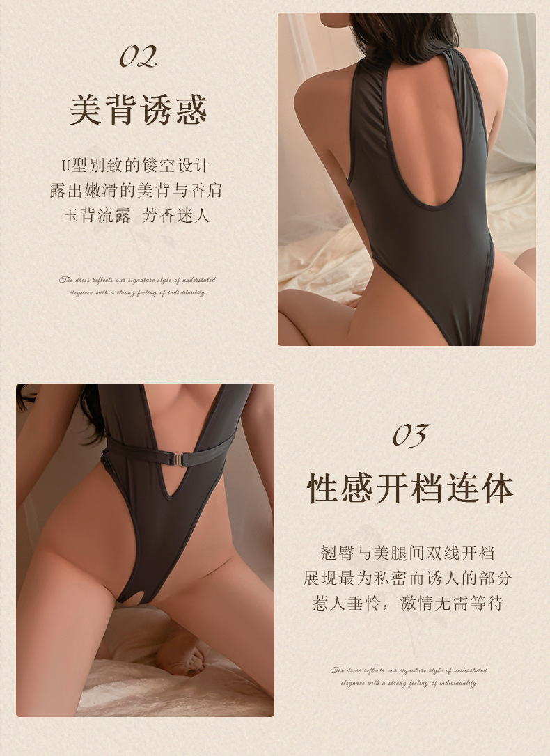 Lencería sexy, tentación hueca, mono de archivo abierto, espalda caliente, traje de uniforme de cama delgado, cabello femenino