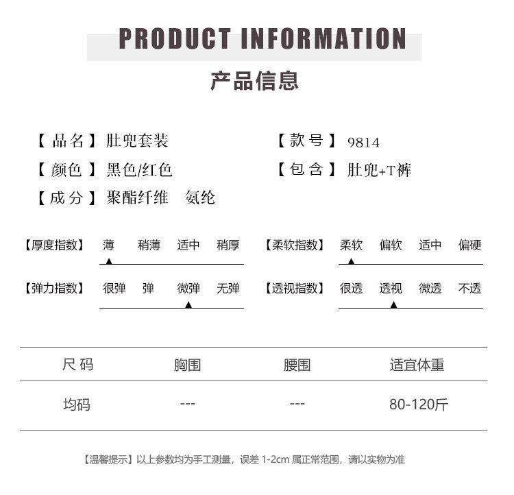 | Color | Negro bellyband + calzoncillos,Vino rojo bellyband + calzoncillos |