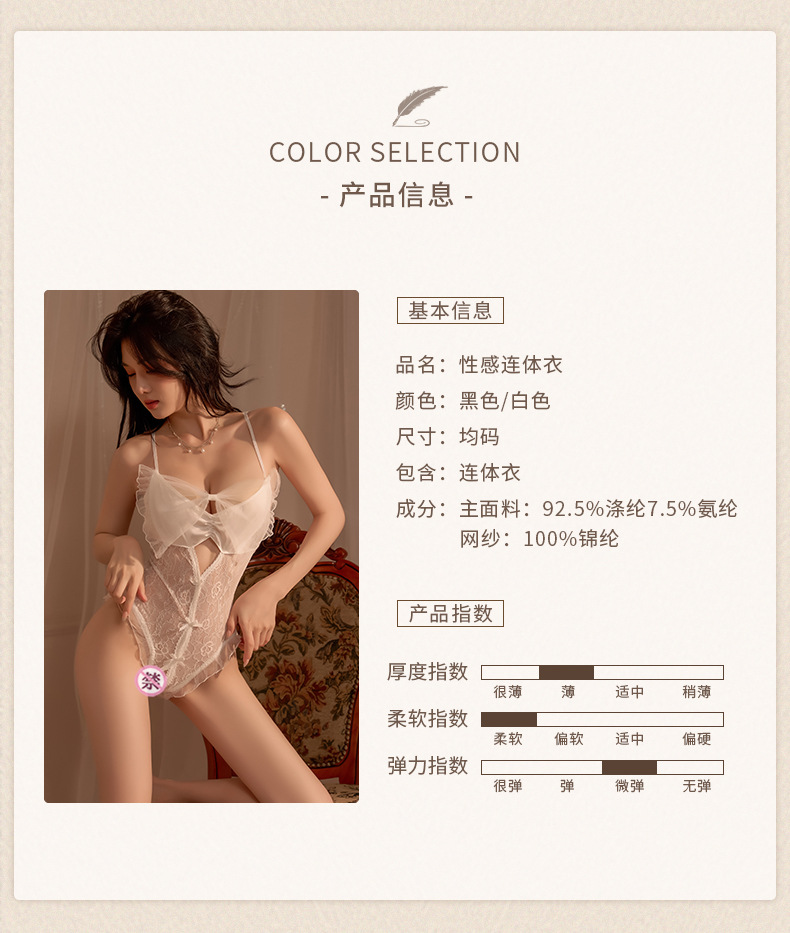 Lencería sexy perspectiva francesa de una pieza malla femenina gran lazo de encaje tentación sexy de una pieza cabello