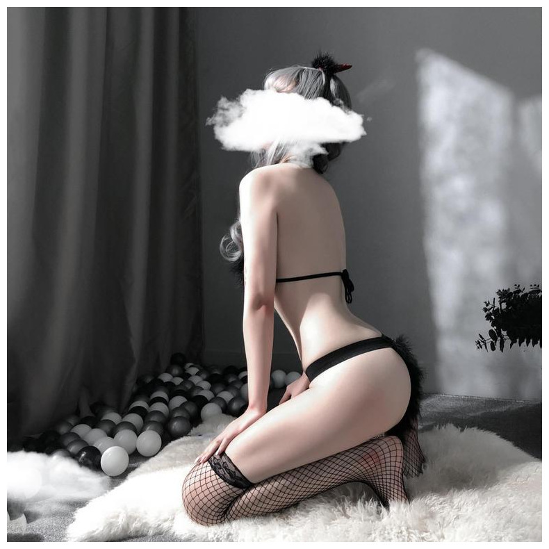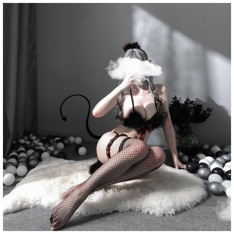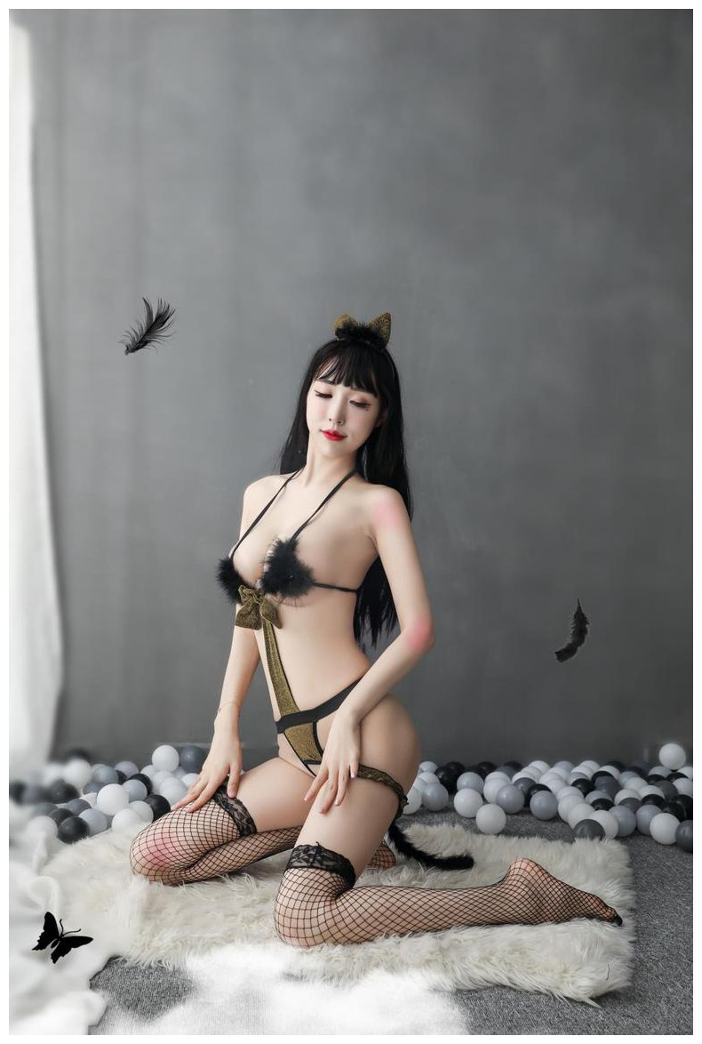 Lencería sexy uniforme tentación de tres puntos de una pieza de felpa Gato niña juego de rol traje de entrega de una pieza
