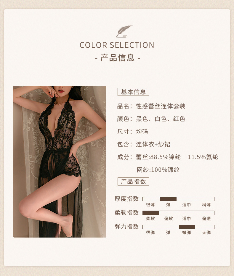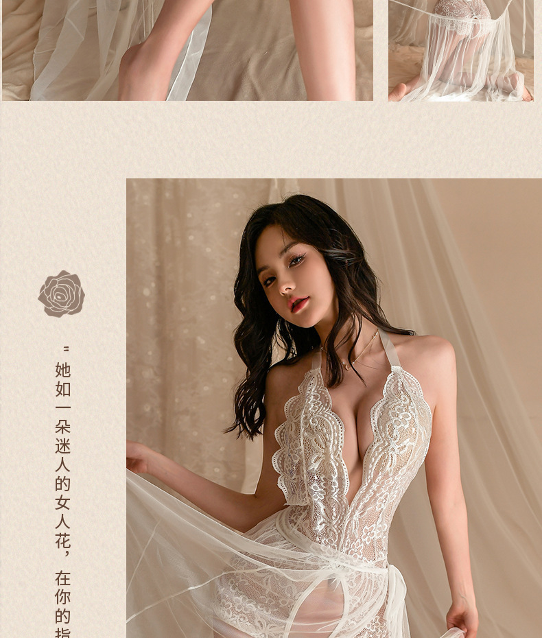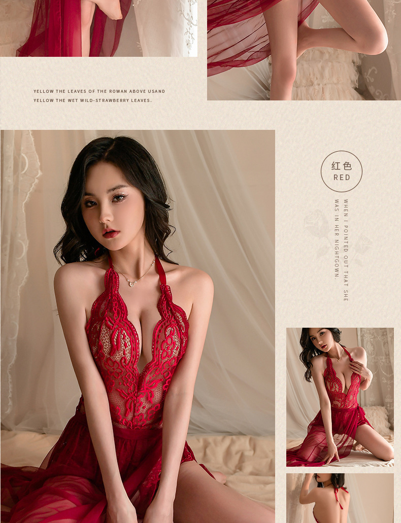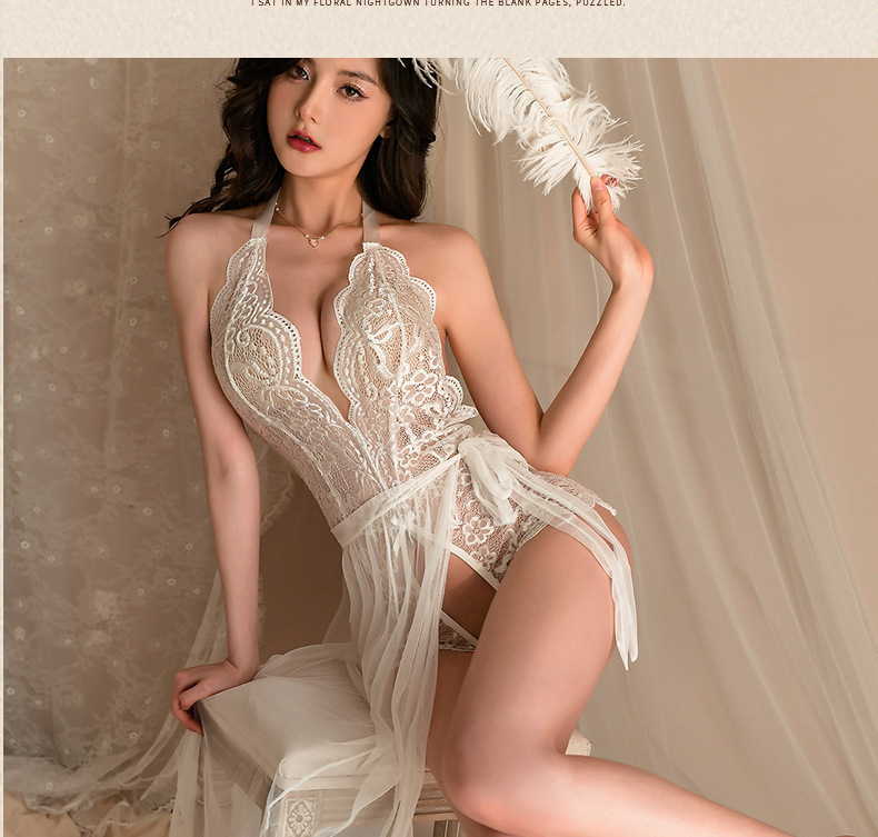 Nueva ropa interior sexy, una pieza, pijamas sexy de archivo abierto para mujer, falda larga caliente hueca, traje de tentación uniforme