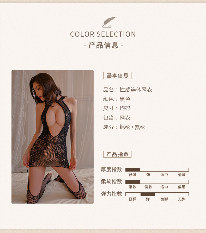 Lencería sexy, uniforme sexy europeo y americano, traje de pasión, tentación sexy transparente, archivo abierto, medias de red de una pieza, cabello femenino