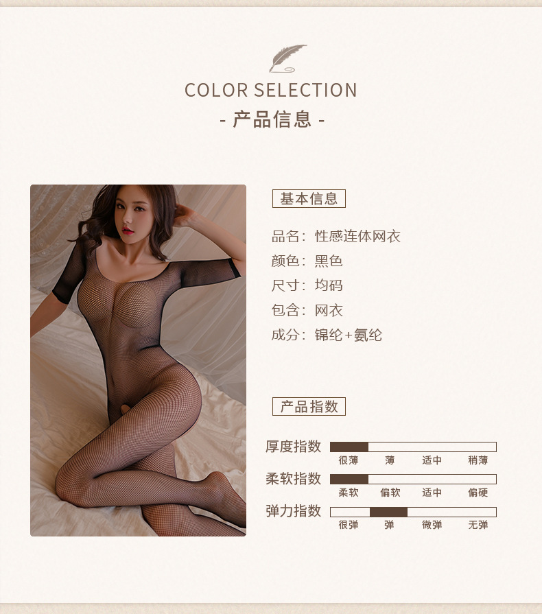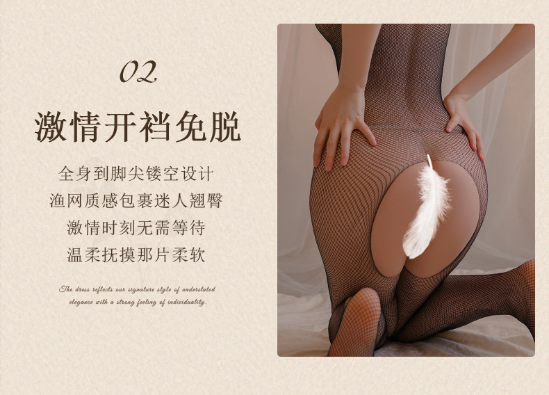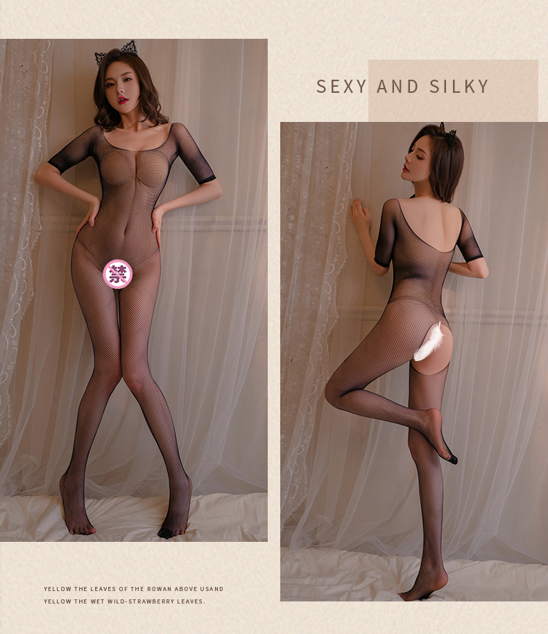 Lencería sexy puro cuello redondo sexy de una pieza manga larga sin espalda malla transparente medias de archivo abierto medias sexy 37