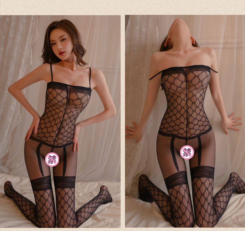 Lencería sexy procesamiento femenino ropa de red sexy al por mayor entrepierna abierta hueca transparente sin quitar medias traje uniforme