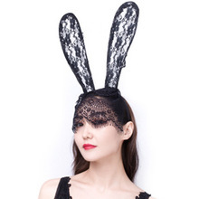 夜店网红圣诞节性感蕾丝面纱兔耳朵发箍 派对头饰舞会装扮头饰