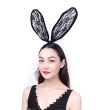 欧美夜店流行发饰兔女郎夸张百变黑色蕾丝兔耳朵发箍头箍
