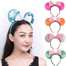 2021新款亮片蝴蝶结发箍欧美米奇耳朵发箍可爱卡通米妮发箍发圈