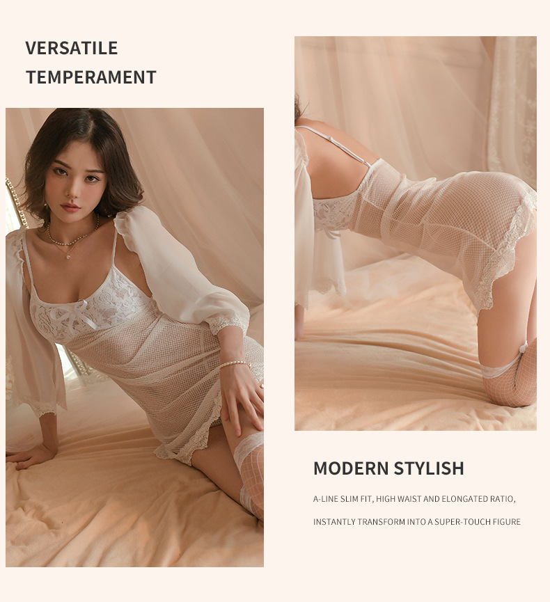Nueva lencería sexy encaje tentación mujer hueco-fuera sexy mono abierto uniforme traje de una sola pieza de entrega