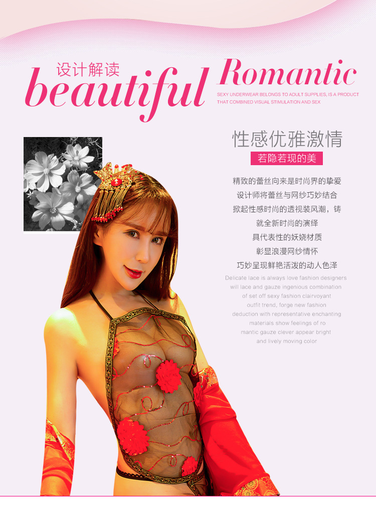 Ropa transparente antigua Tang traje bellyband lencería sexy caliente adulto tentación sexy estilo retro colgando pijamas de las mujeres
