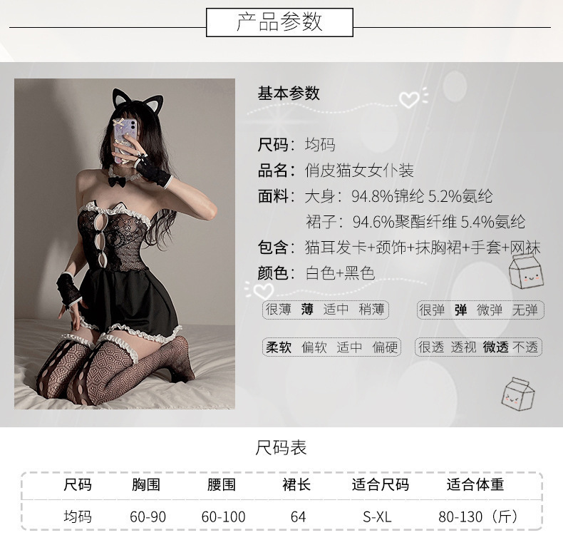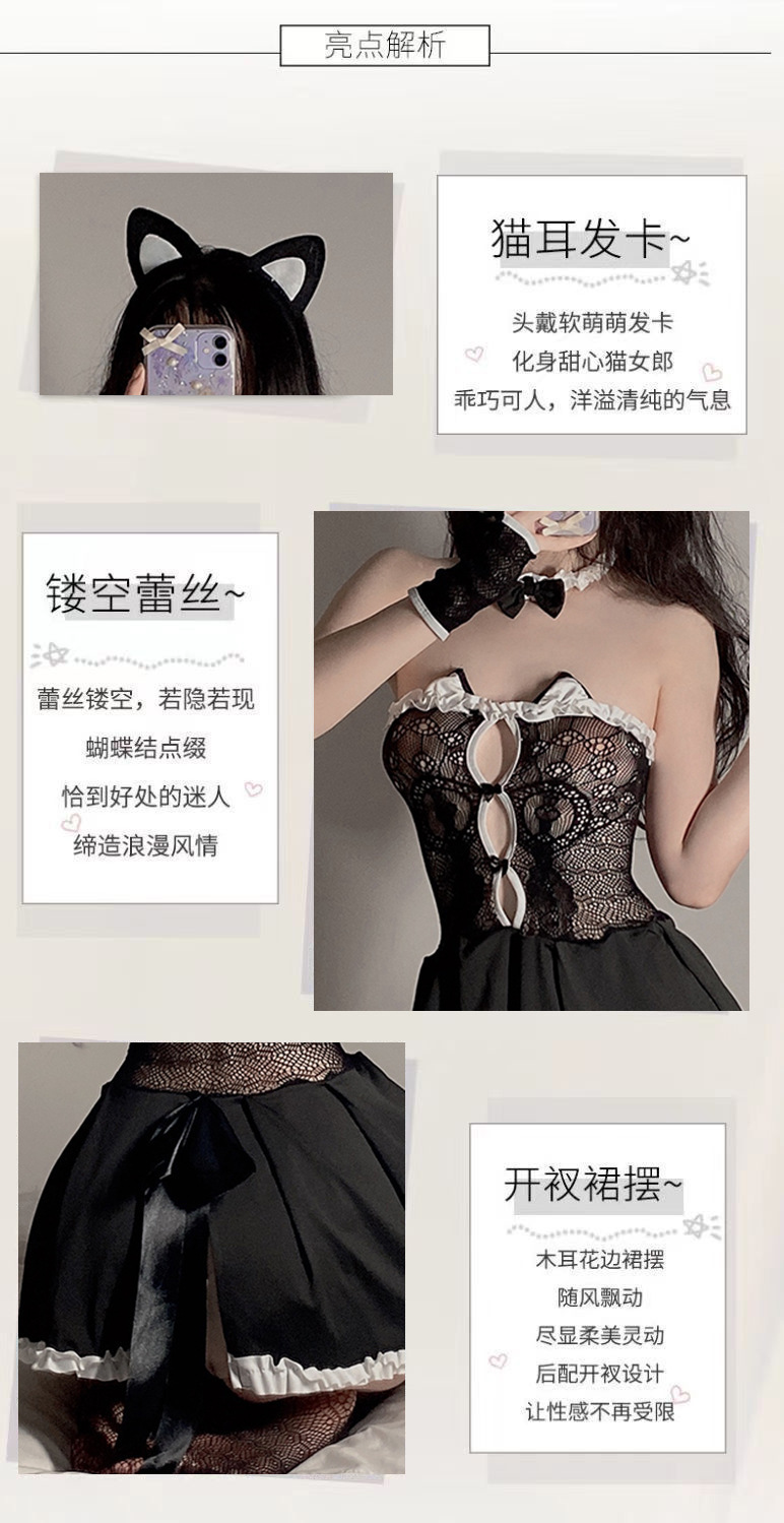 Lencería sexy transparente traje uniforme de criada conejito fuera del hombro vestido de una pieza tentación puro deseo camisón de encaje