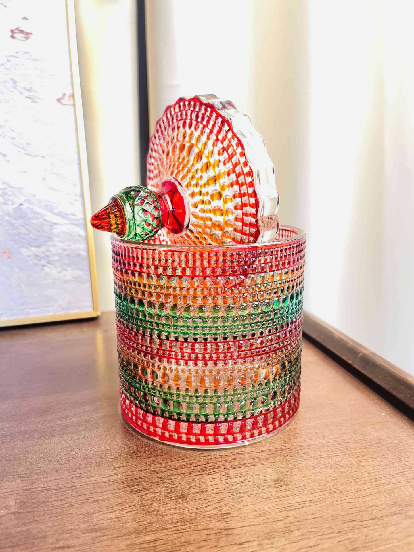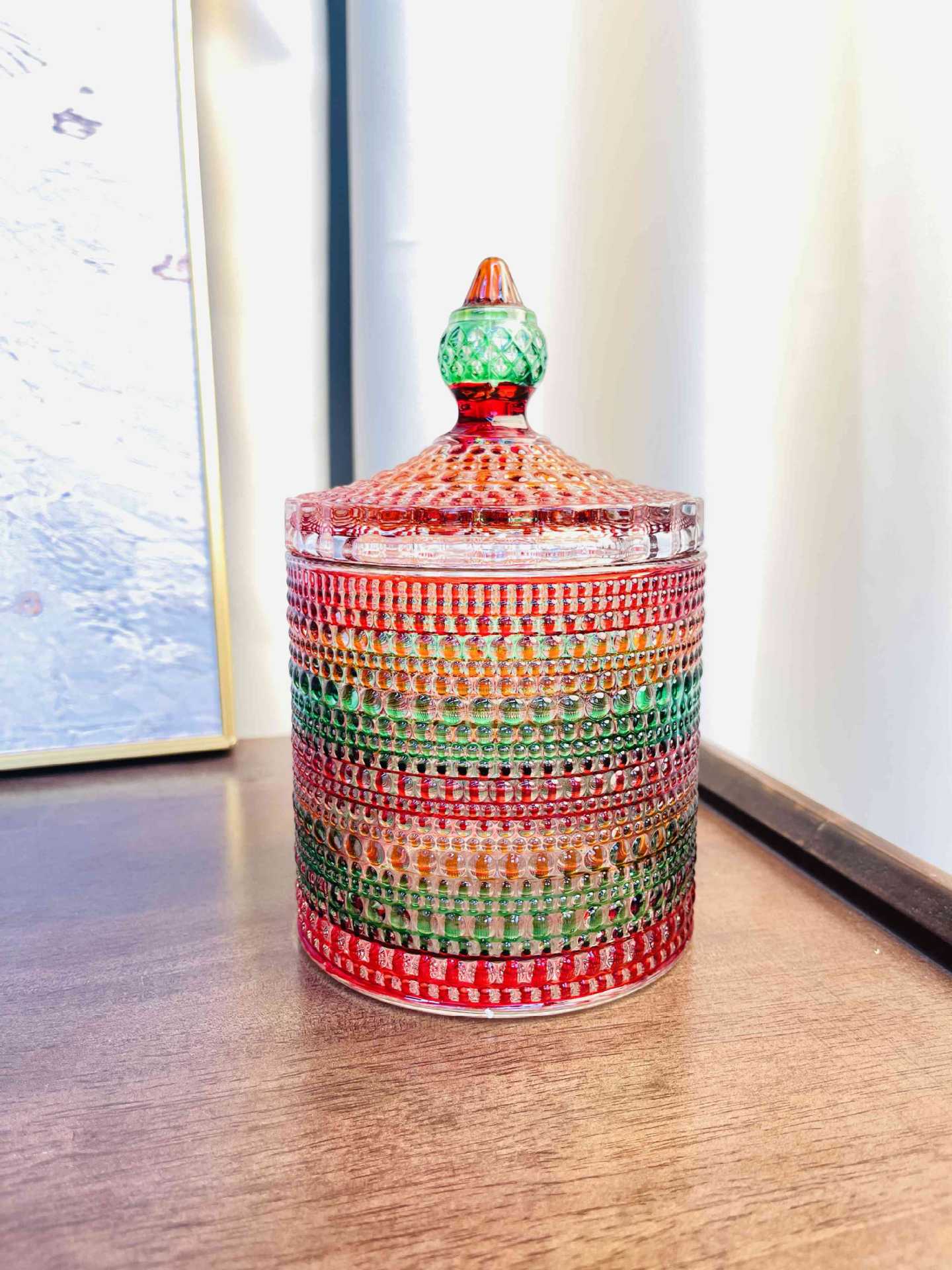 Tarro de almacenamiento de vidrieras de estilo europeo Tarro de dulces Tanque de dulces Aperitivos de frutas secas Tarro de azúcar con cubo Tarro de vidrio colorido