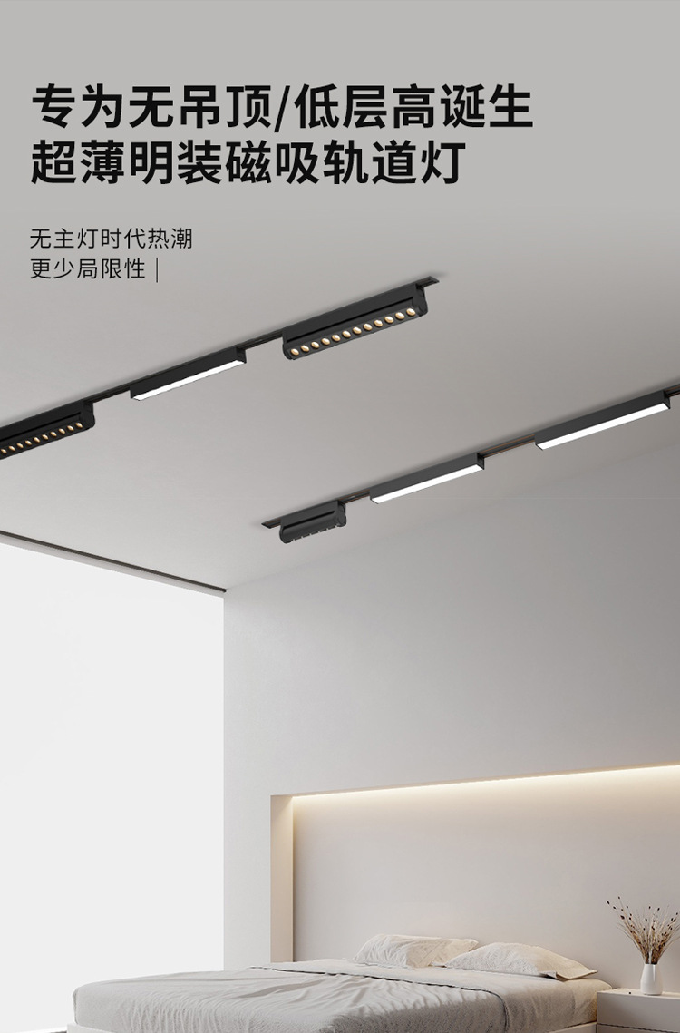 Se ha conectado a la aplicación Mijia, lámpara de riel de succión magnética ultrafina, techo sin luz principal, iluminación inteligente para sala de estar, blanco