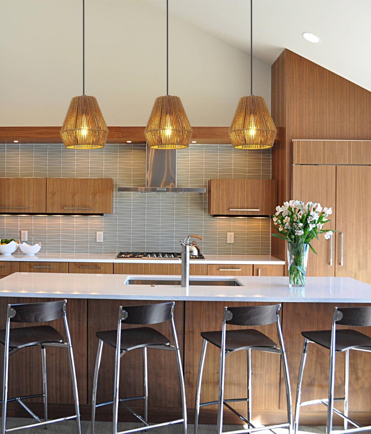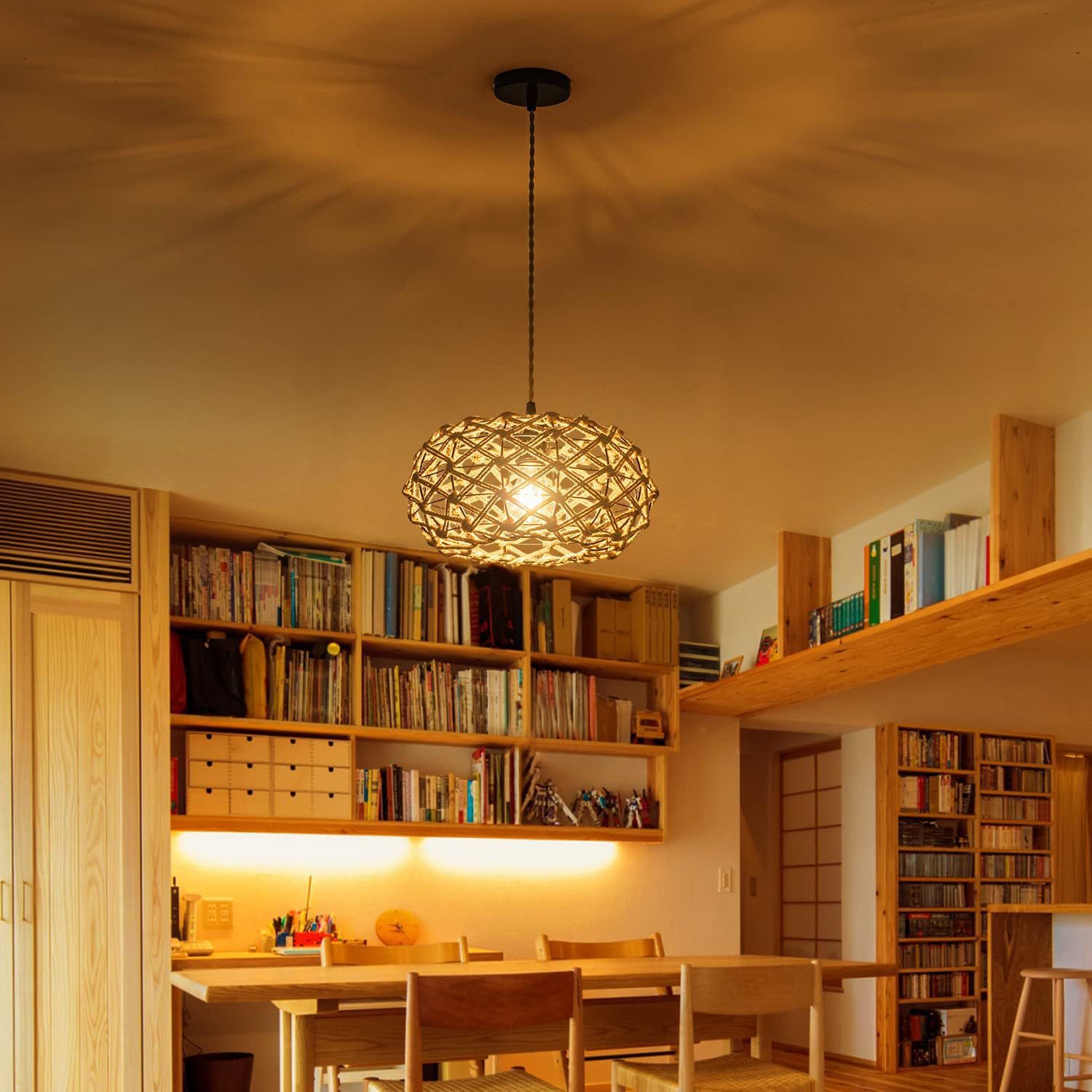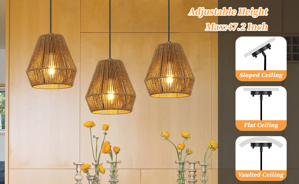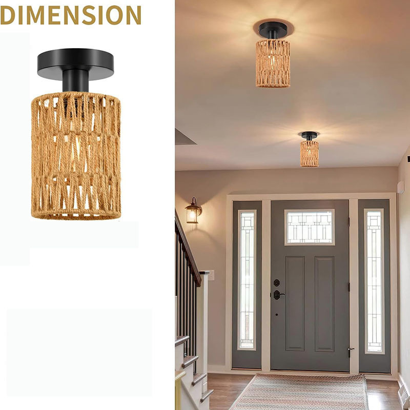 Lámpara de techo tejida a mano con cuerda de cáñamo de imitación estadounidense
