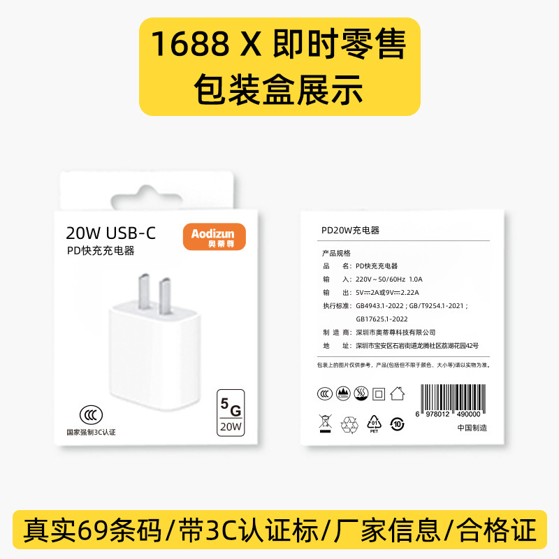 Cargador PD20W de alta gama (certificado 3C)
