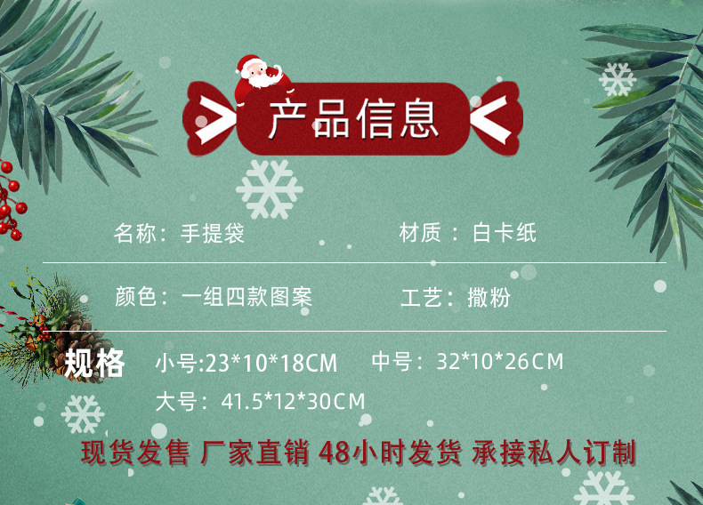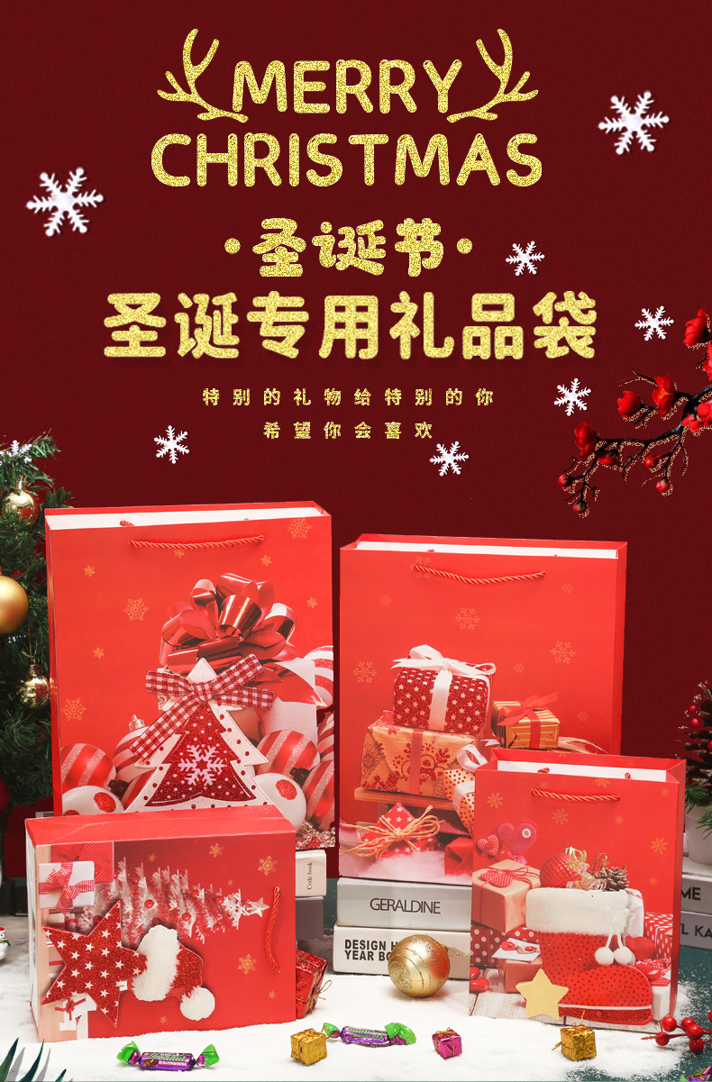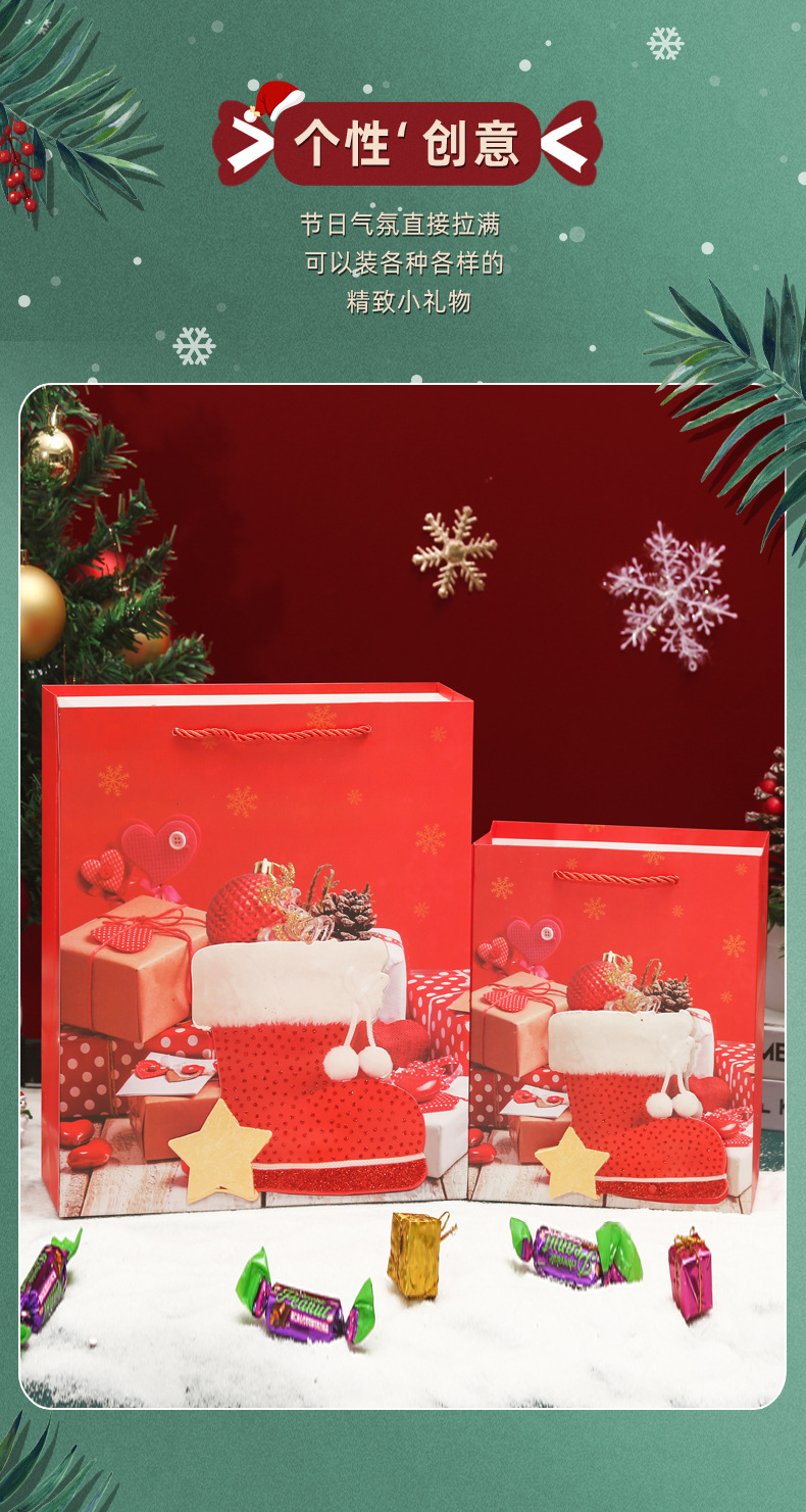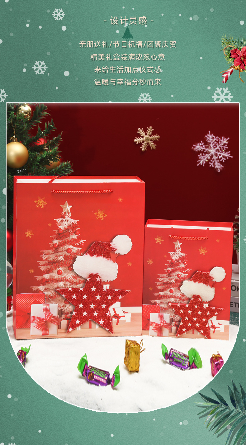 Amazon transfronterizo de Navidad nuevo regalo mano de la víspera de Navidad caramelo cuadrado inferior bolsa de compras al por mayor
