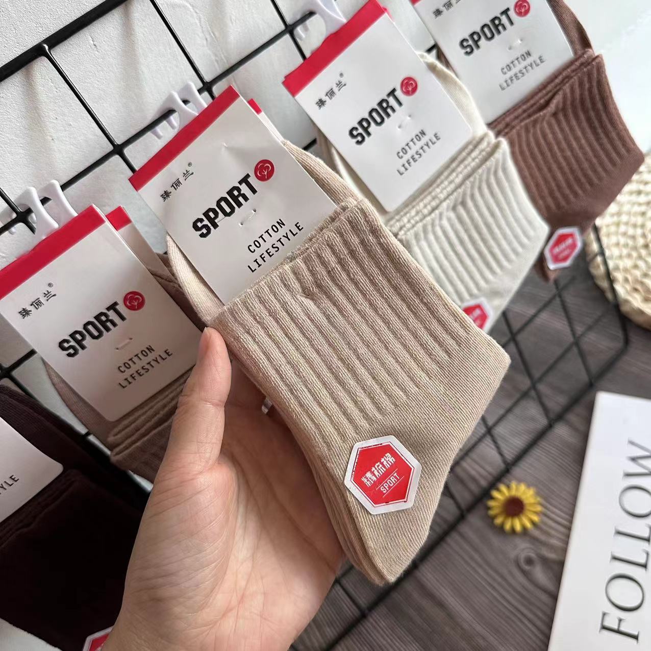 Suministro de súper otoño nuevos calcetines de algodón para mujer calcetines de tubo medio Maillard letras calcetines de marea calcetines deportivos coreanos para hombres y mujeres al por mayor