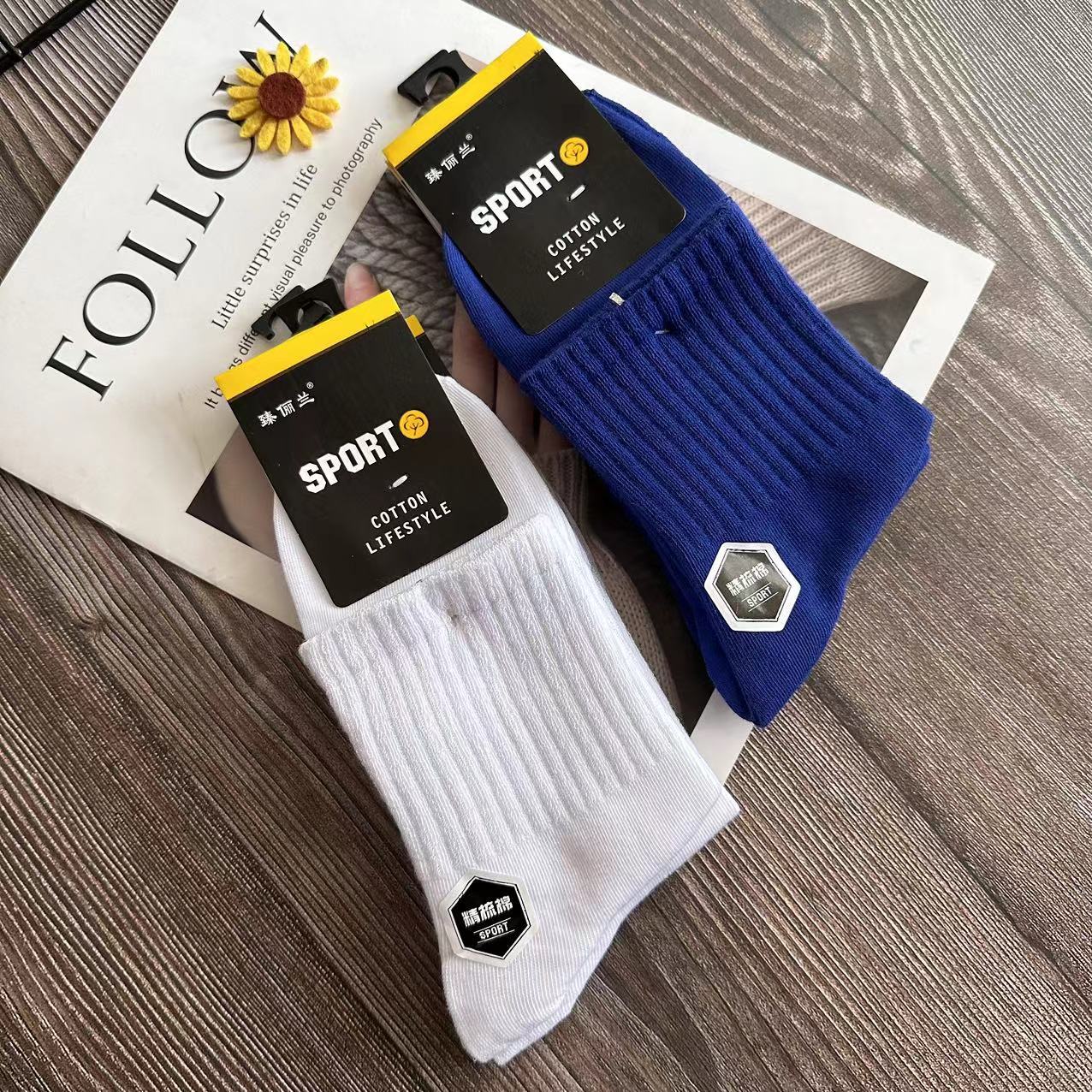Calcetines para hombres de otoño e invierno al por mayor, calcetines de tubo, calcetines de algodón Zhuji, calcetines deportivos para estudiantes, calcetines para correr para hombres y mujeres