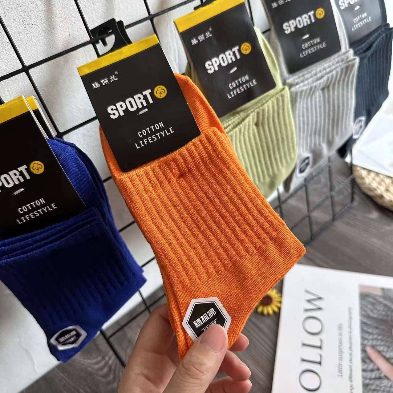 Calcetines de otoño al por mayor, calcetines de tubo para hombres, calcetines para correr para jóvenes, calcetines deportivos de color sólido de otoño e invierno, calcetines de algodón transpirables