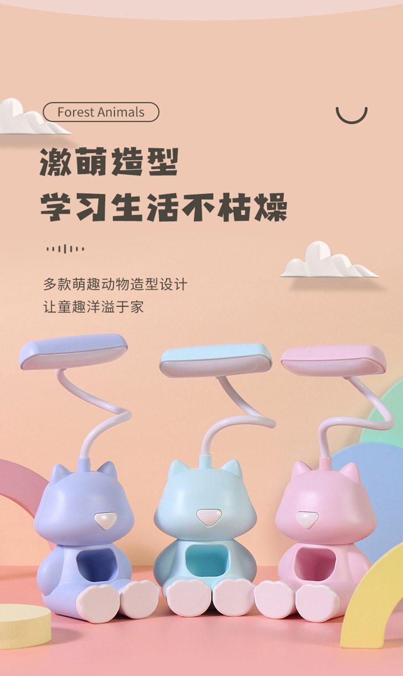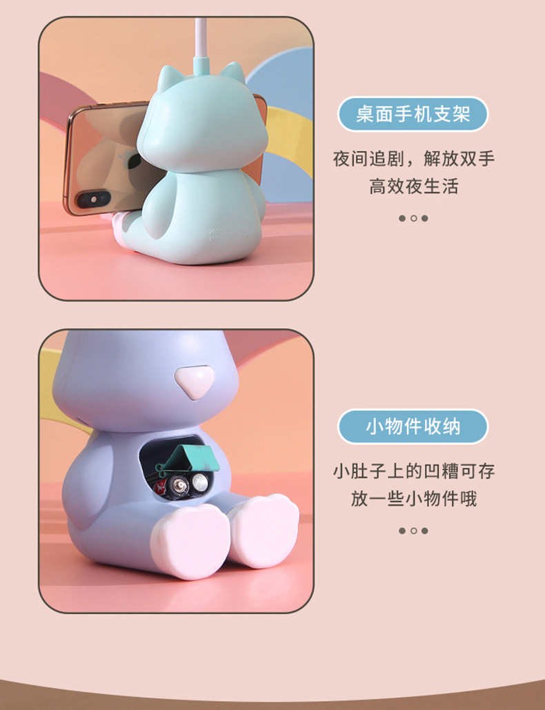 Multifuncional creativo de dibujos animados lámpara de escritorio recargable estudiante lectura aprendizaje LED protección de los ojos lámpara de escritorio lámpara de noche dormitorio de los niños