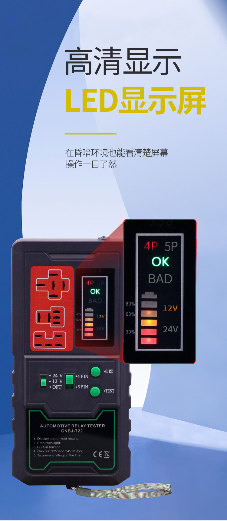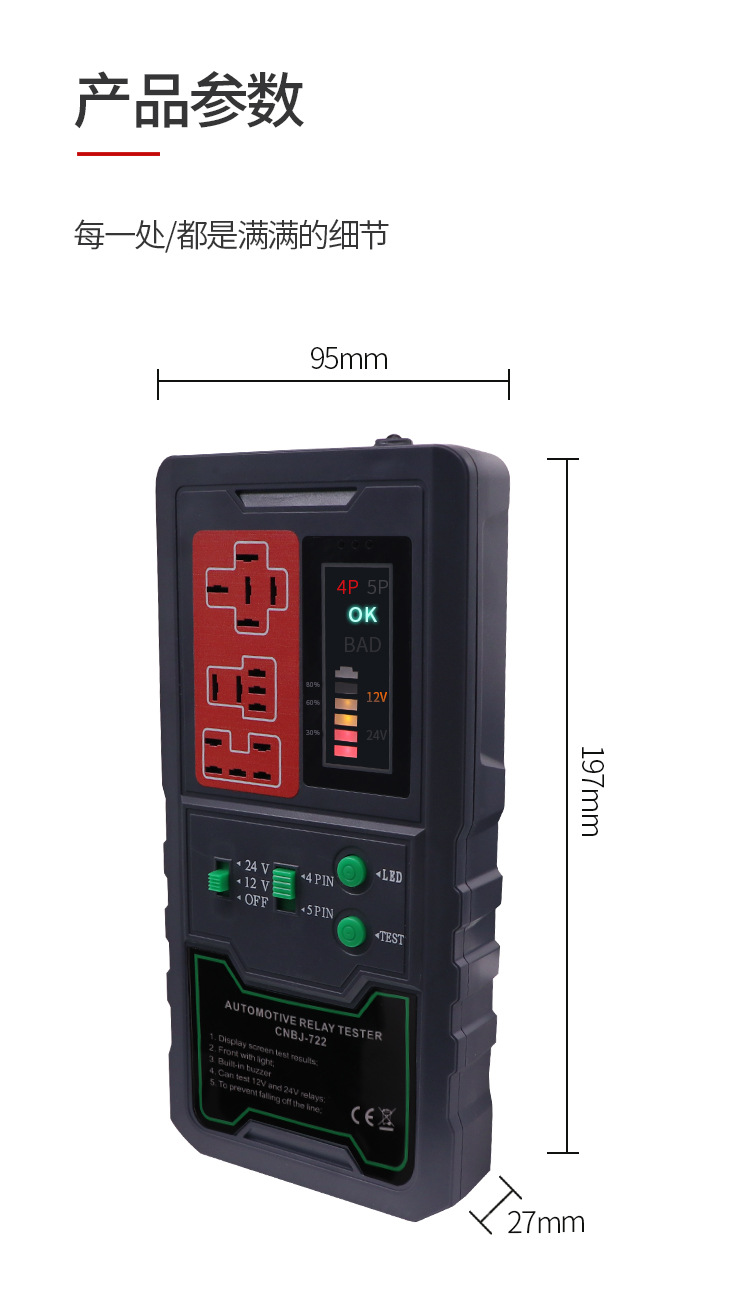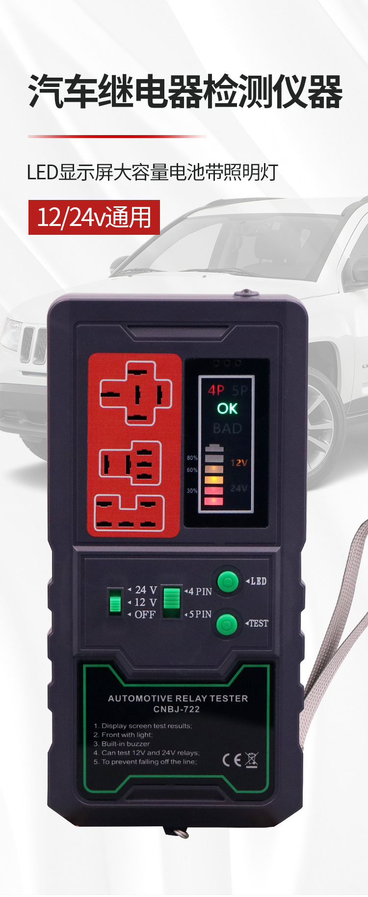 12v/24 detector de la retransmisión del coche analizador de la falta del pie de la cuatro-pierna