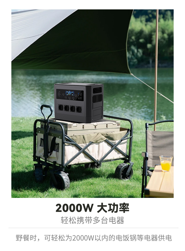 220V al aire libre banco de energía portátil almacenamiento de energía 2000W de alta potencia al aire libre generador solar