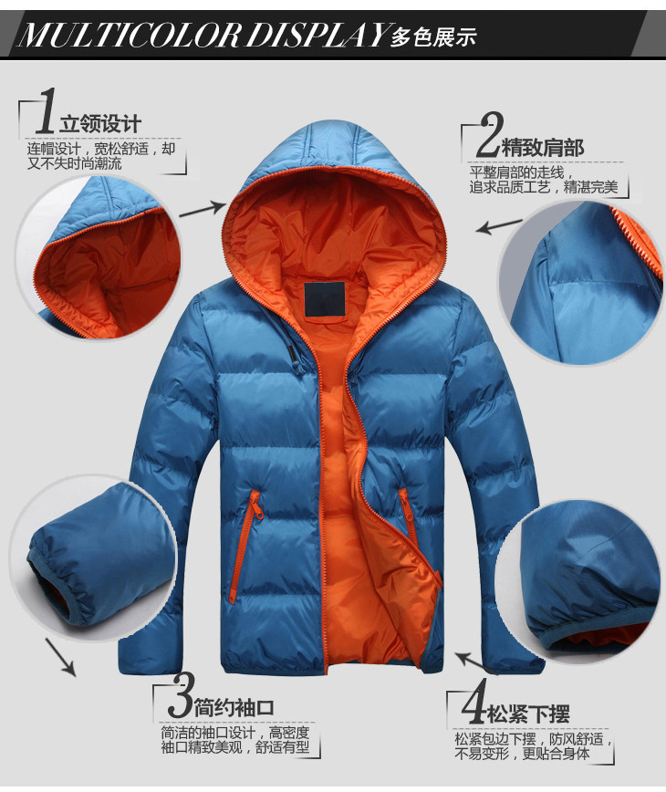 Abrigo de algodón con capucha delgada con cremallera de color caramelo para hombre clásico al por mayor de comercio exterior de venta propia de fábrica