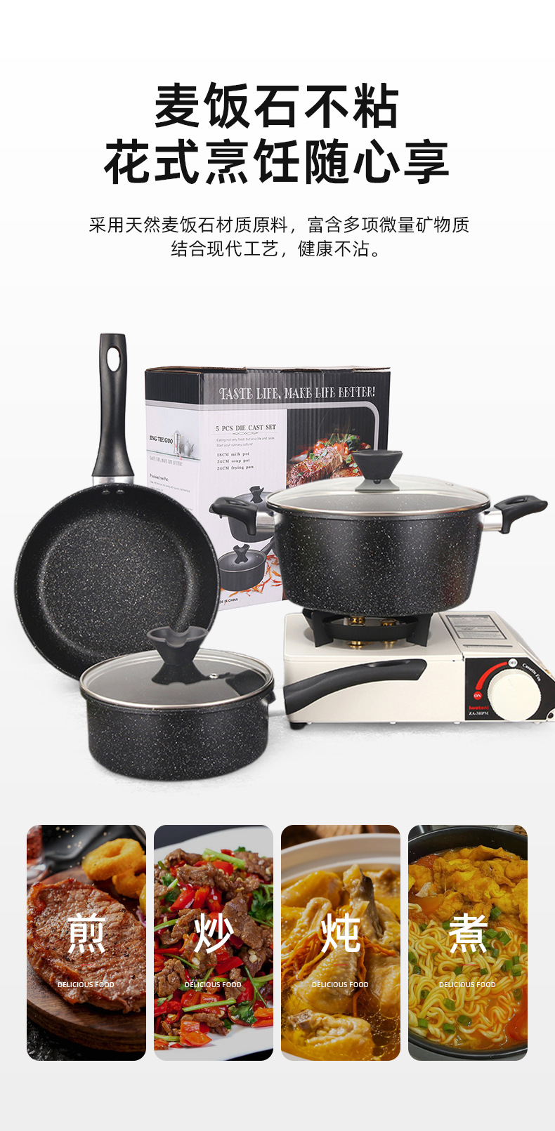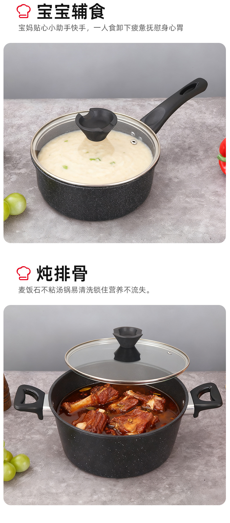 Juego de ollas para el hogar, olla antiadherente de piedra médica, juego de regalo, sartén, olla de leche, olla de sopa, juego de tres piezas al por mayor