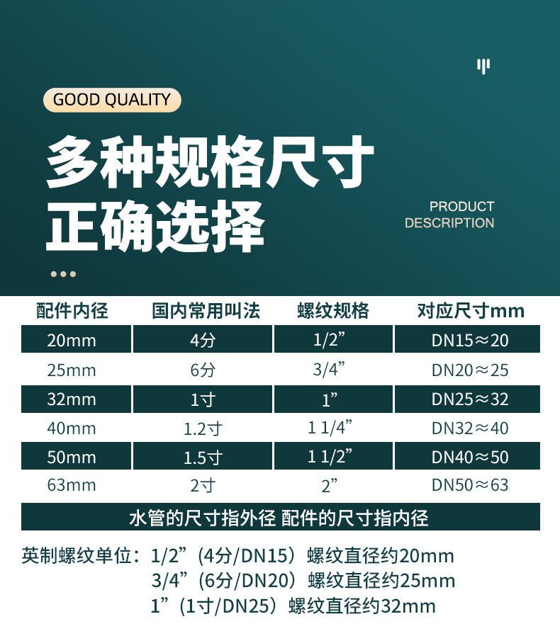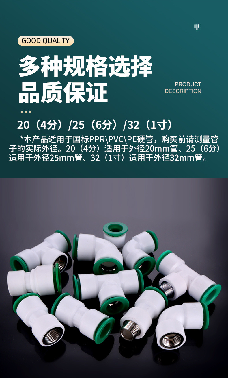 | Especificaciones del producto | 20(4 puntos)/enchufe rápido directo,25(6 puntos)/enchufe rápido directo,32(1 pulgada)/enchufe rápido directo,20(4 puntos)/codo de inserción rápida,25(6 puntos)/codo de inserción rápida,32(1 pulgada)/codo de inserción rápida,20(4 puntos)/T de inserción rápida,25(6 puntos)/T de inserción rápida,32(1 pulgada)/T de inserción rápida,20(4 puntos)/válvula de bola de enchufe rápido,25(6 puntos)/válvula de bola de enchufe rápido,32(1 pulgada)/válvula de bola de enchufe rápido,20(4 puntos)/válvula de globo de enchufe rápido,25(6 puntos)/válvula de globo de enchufe rápido,32(1 pulgada)/válvula de globo de enchufe rápido,20(4 puntos)/grifo de enchufe rápido,25(6 puntos)/grifo de enchufe rápido,20*4 puntos de alambre interior/enchufe rápido directo,25*4 puntos de alambre interior/enchufe rápido directo,25*6 puntos de alambre interior/enchufe rápido directo,20*4 puntos de alambre exterior/enchufe rápido directo,25*4 puntos de alambre exterior/enchufe rápido directo,25*6 puntos de alambre exterior/enchufe rápido directo,20*4 puntos alambre interior/codo de inserción rápida,25*4 puntos alambre interior/codo de inserción rápida,25*6 puntos alambre interior/codo de inserción rápida,20*4 puntos de alambre exterior/codo de inserción rápida,25*4 puntos de alambre exterior/codo de inserción rápida,25*6 puntos alambre exterior/codo de inserción rápida,20*4 puntos de alambre interior/T de inserción rápida,25*4 puntos de alambre interior/T de inserción rápida,25*6 puntos de alambre interior/T de inserción rápida,20*4 puntos de alambre exterior/T de inserción rápida,25*4 puntos de alambre exterior/T de inserción rápida,25*6 puntos de alambre exterior/T de inserción rápida,25*20/reductora directa,32*25/enchufe rápido y reductora directa,25*20/Codo reductora de enchufe rápido,20(4 puntos)/tapón de enchufe rápido,25(6 puntos)/tapón de enchufe rápido,32(1 pulgada)/tapón de enchufe rápido |