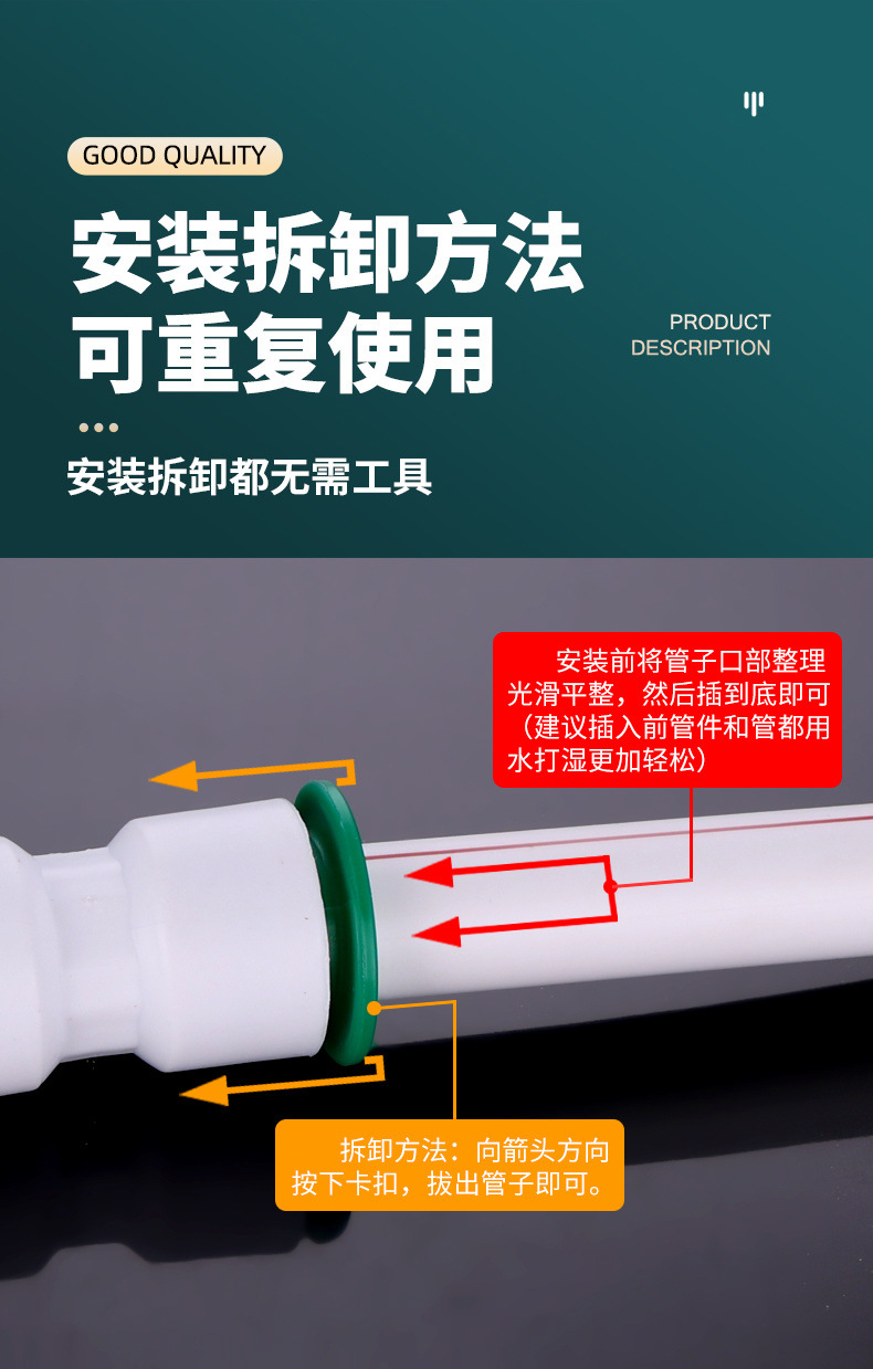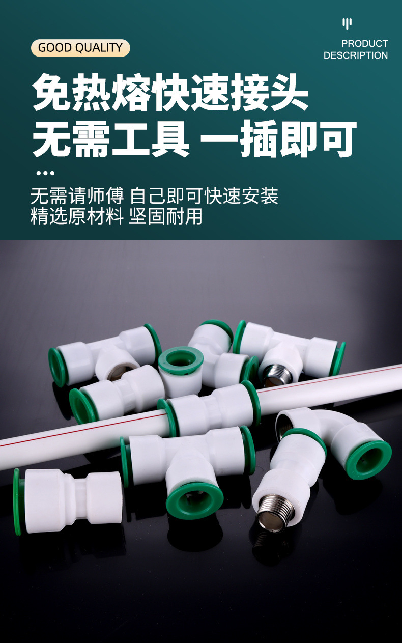 Tubería de agua sin fusión en caliente Conector de enchufe rápido PPR 4 puntos 20 Conexión rápida en línea 6 puntos 25 Codo de PE directo rápido T