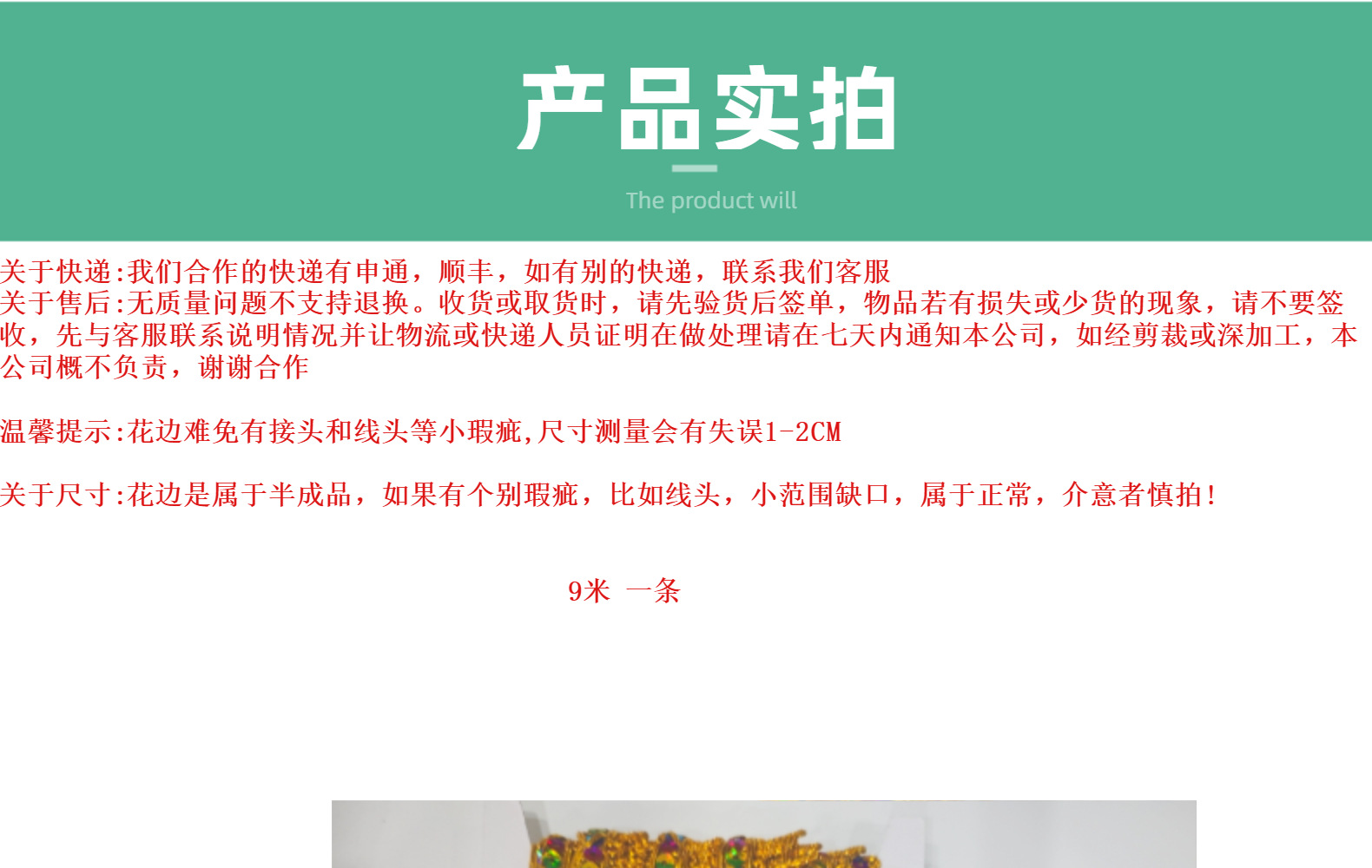 | Modelo de especificación | Pico dorado * Una tarjeta 10 yardas * 2.2cm,2.2cm * Pico plateado * Una tarjeta 10 yardas |