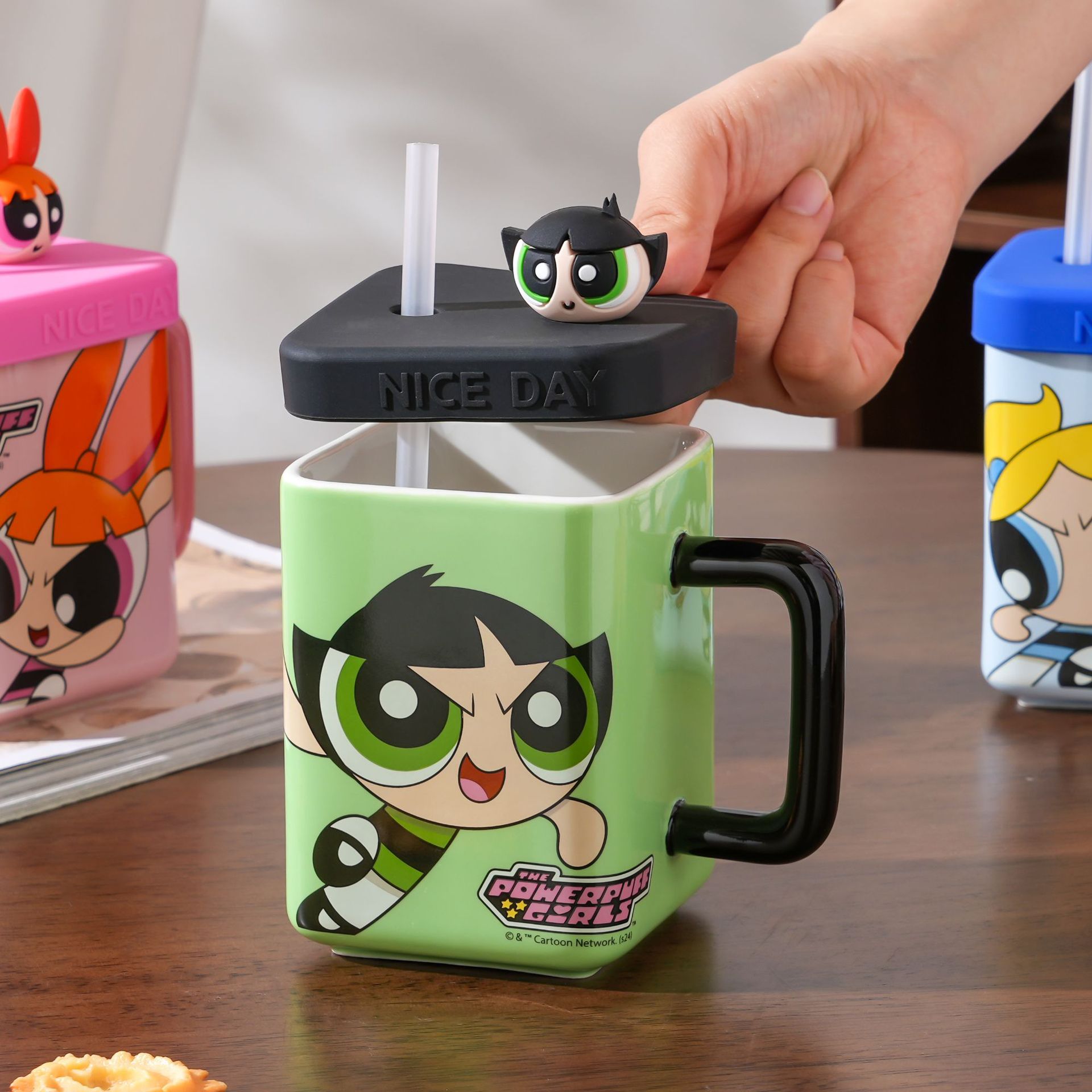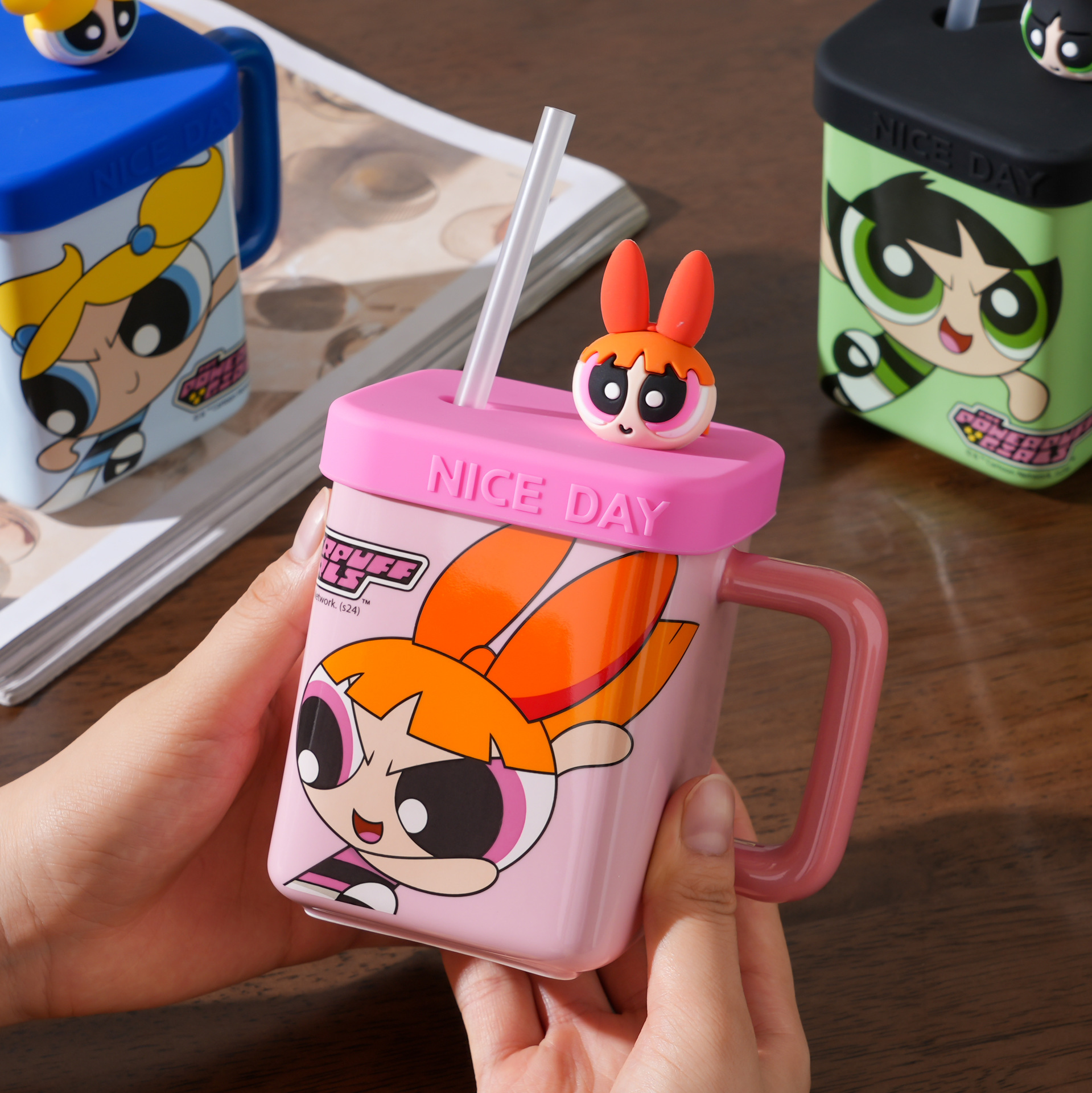 Taza de niña de la policía voladora, taza de café de regalo de alto valor para niñas con tapa, taza de agua de paja de cerámica para parejas en casa