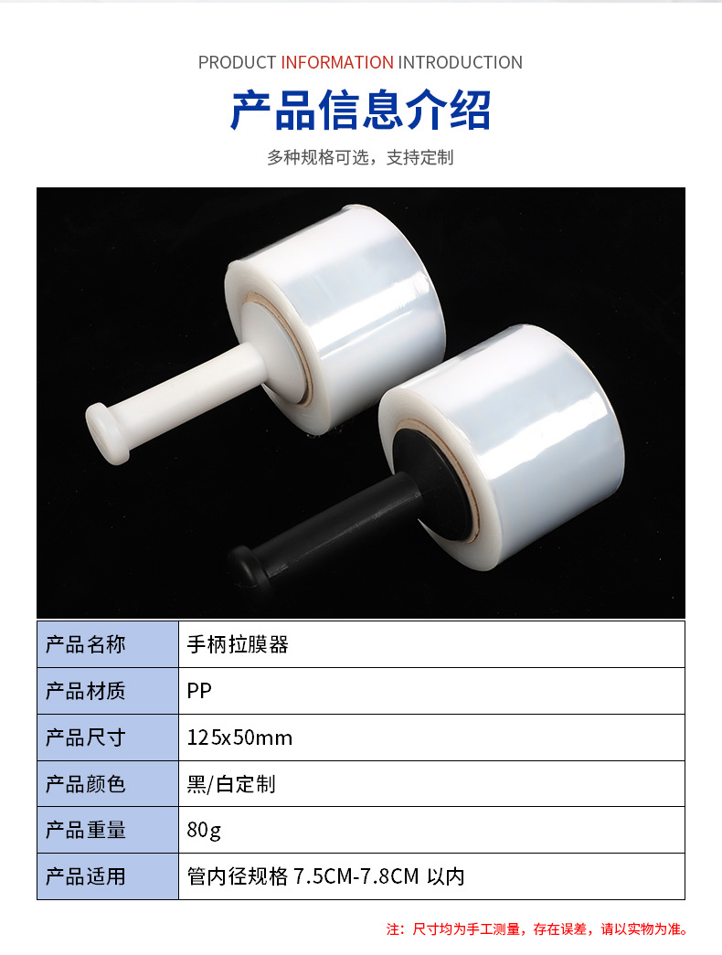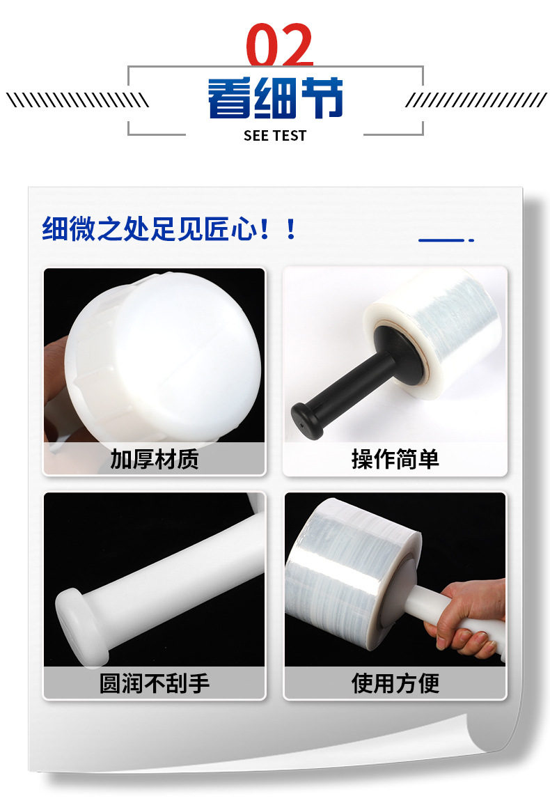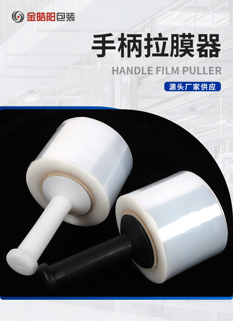 Mango de película estirable, herramienta de embalaje de película en rollo pequeño, extractor de película, máquina bobinadora, producto de plástico, fabricante auxiliar de embalaje de bobinado
