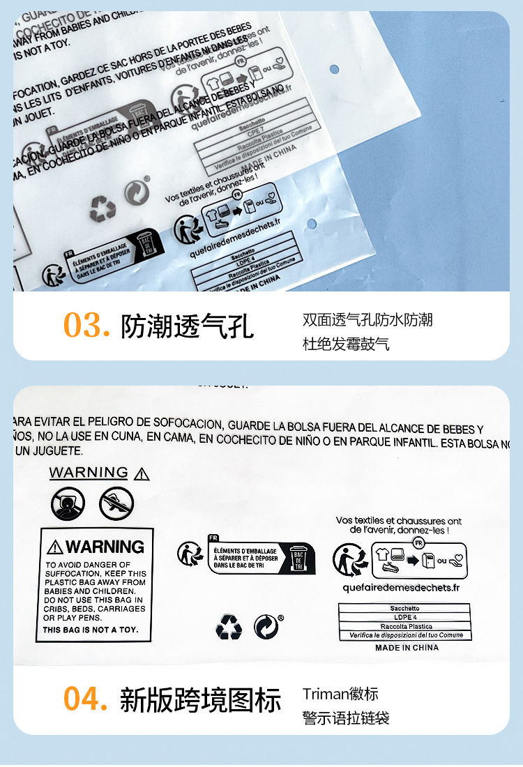 Un gran número de en stock Expresar la ropa de comercio exterior bolsa de cremallera palabras de advertencia bolsa de cremallera transfronteriza transparente esmerilado bolsa de embalaje de ropa