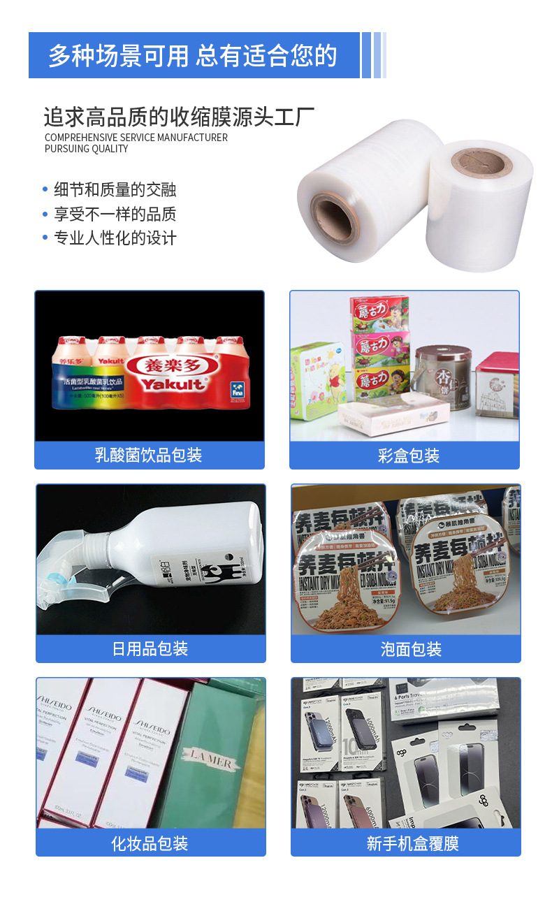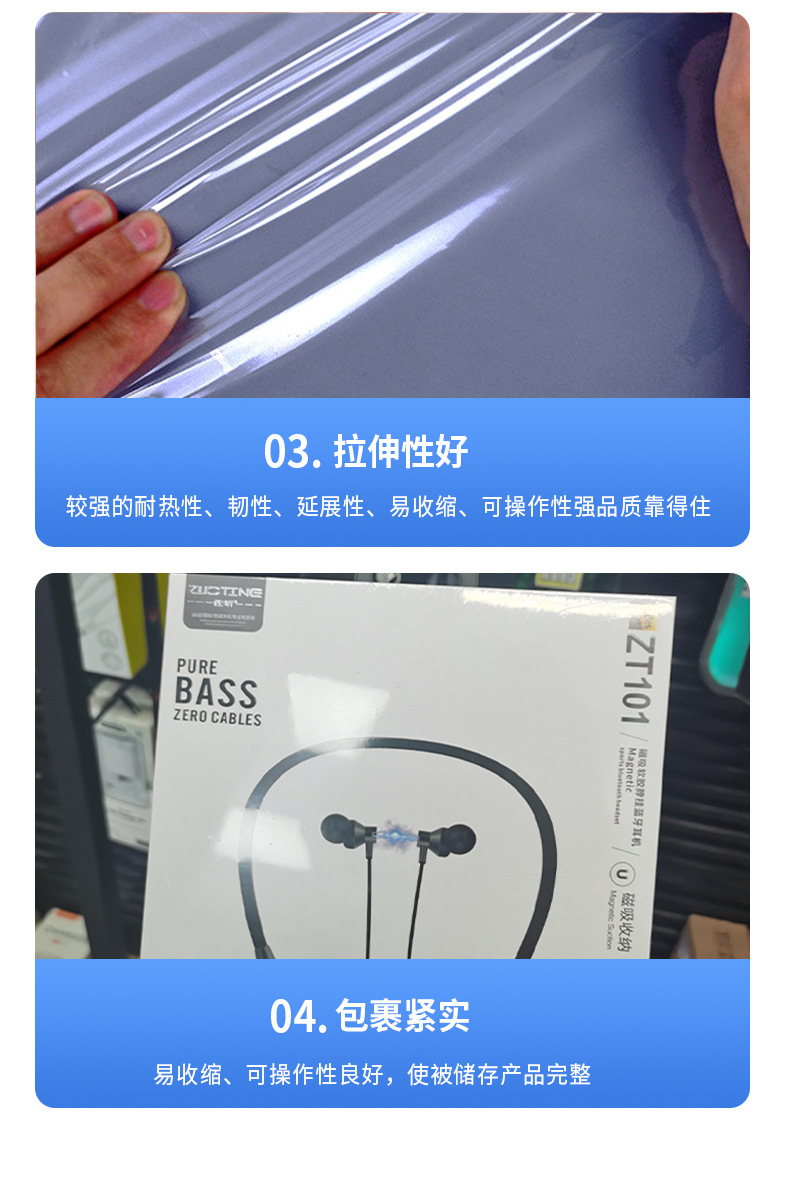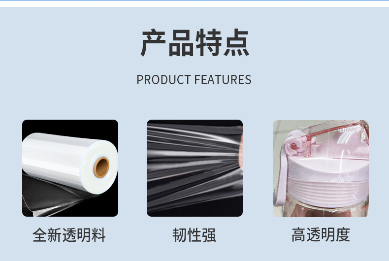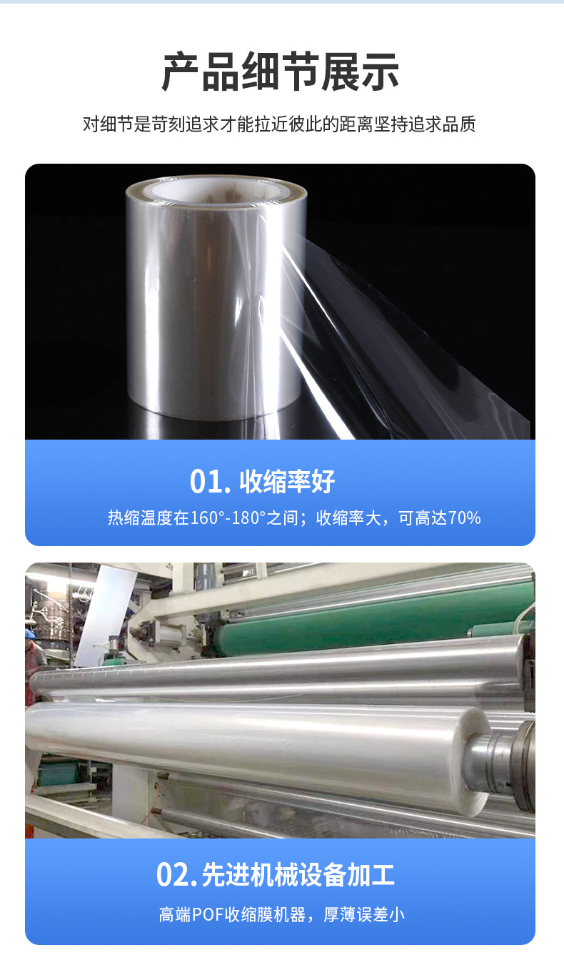 Película retráctil POF, protección del medio ambiente, embalaje de vajilla transparente, película plástica, etiqueta de película termorretráctil, bolsa plana, película retráctil al por mayor