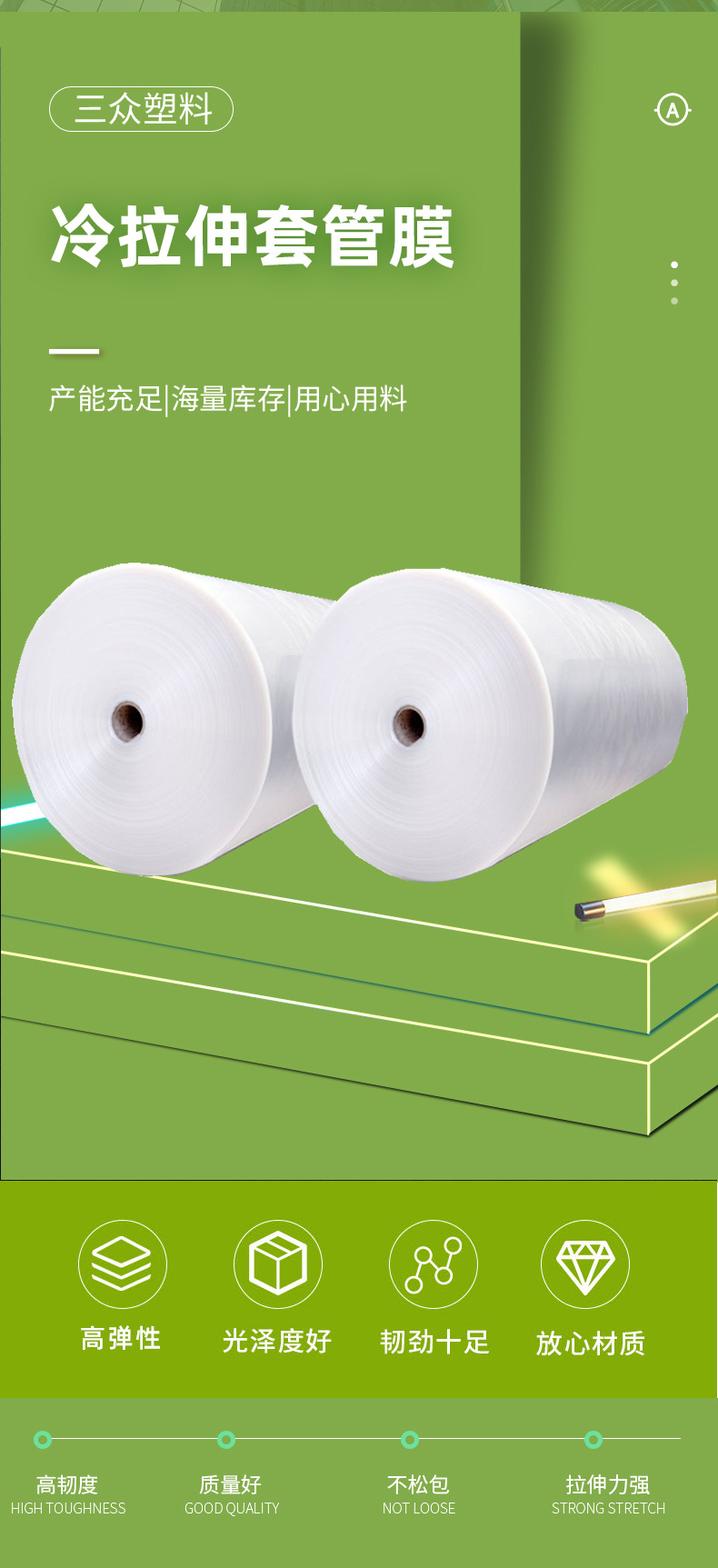 Fábrica al por mayor PE estiramiento frío encogimiento táctil industrial envoltura película transparente auto-adhesivo gran rollo PE frío encogimiento táctil