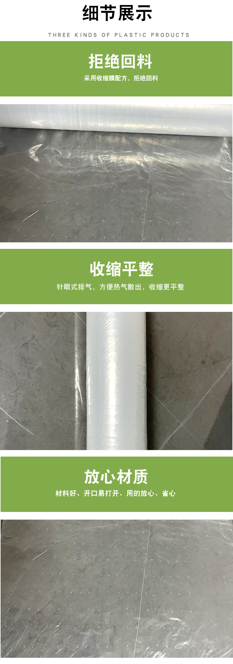 Piso de madera estenopeica transparente película Termocontraíble película piso de madera especial bandeja retráctil película PE película retráctil