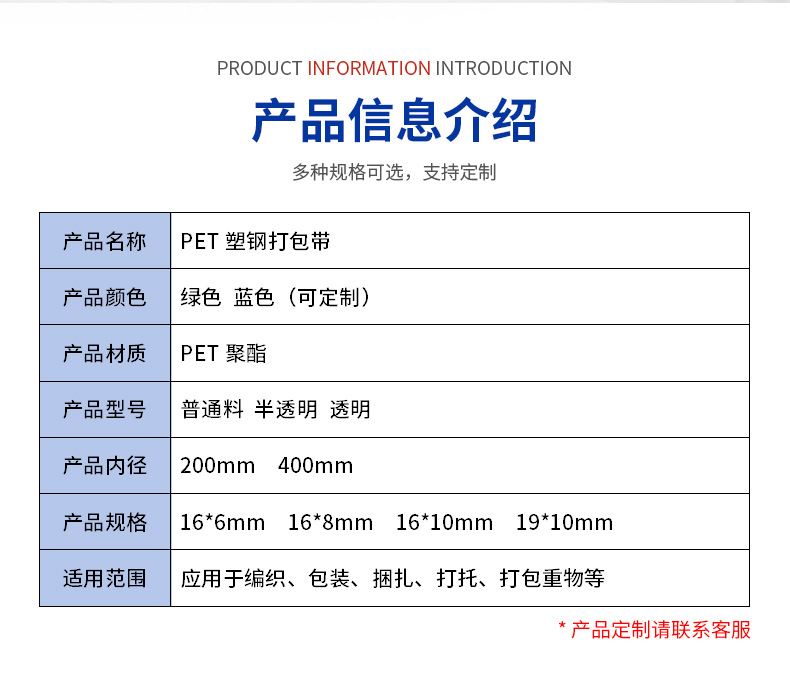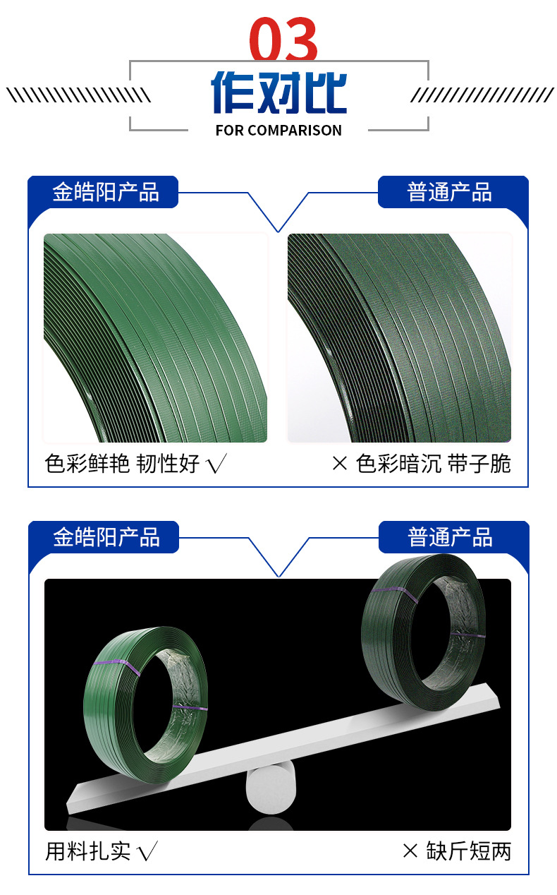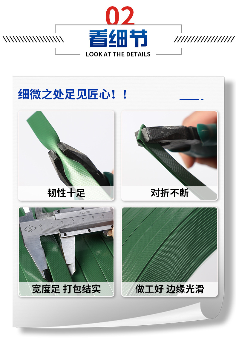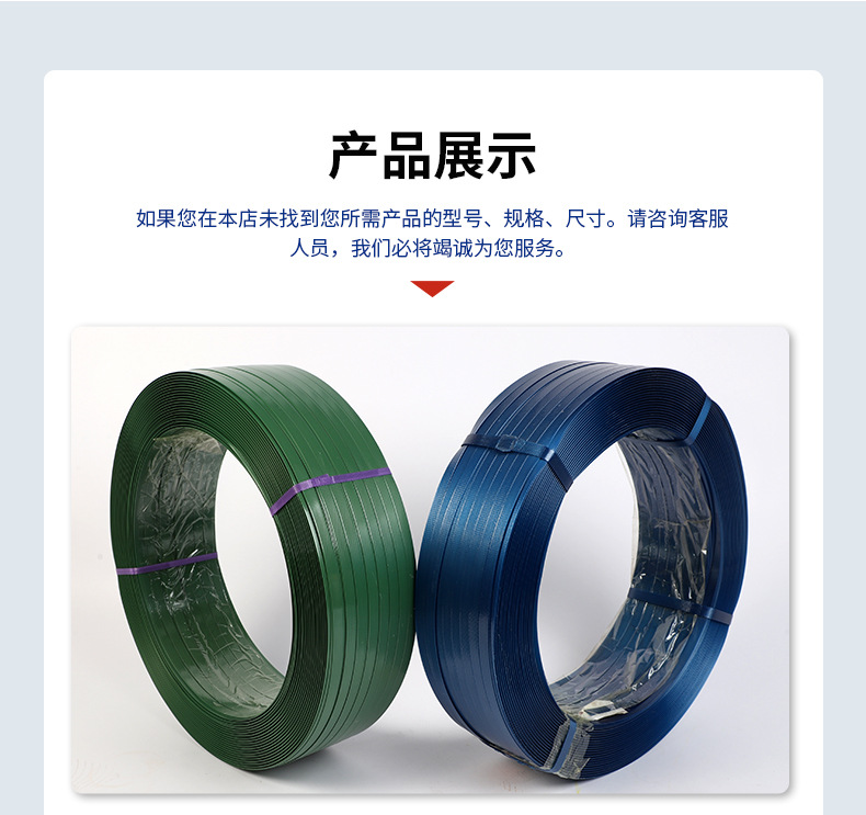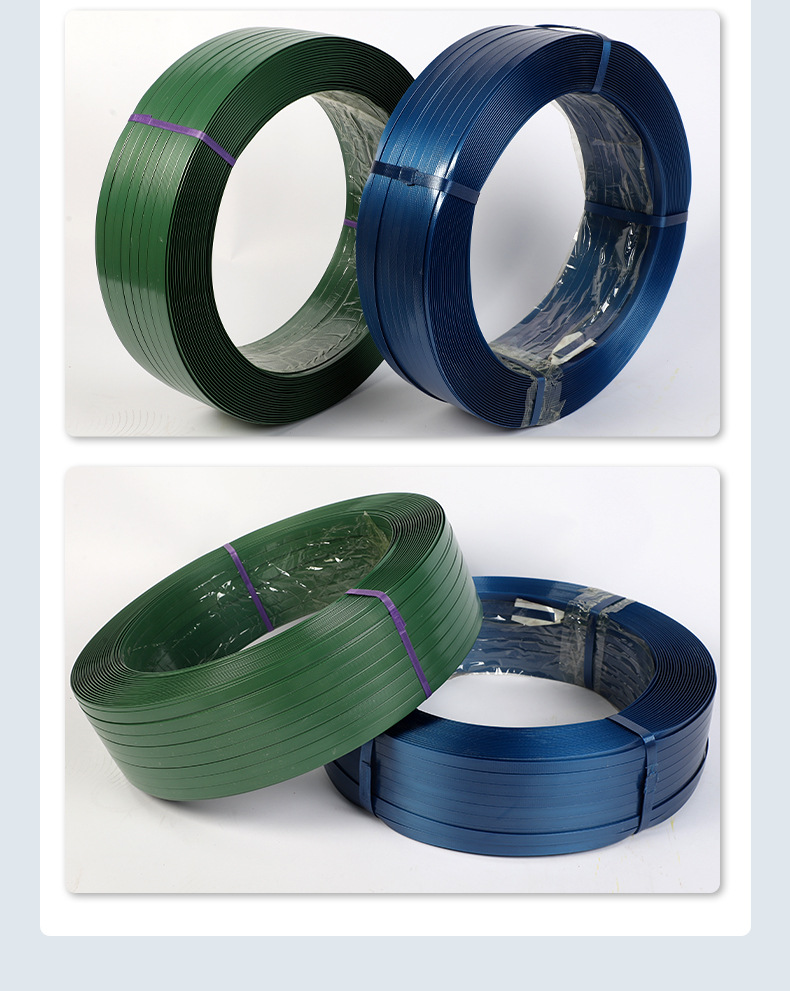 Fabricante de cinta de embalaje de acero plástico PET, punto, cabello lacio, cinta de embalaje de acero plástico PET de múltiples especificaciones, cinta de embalaje de acero plástico verde