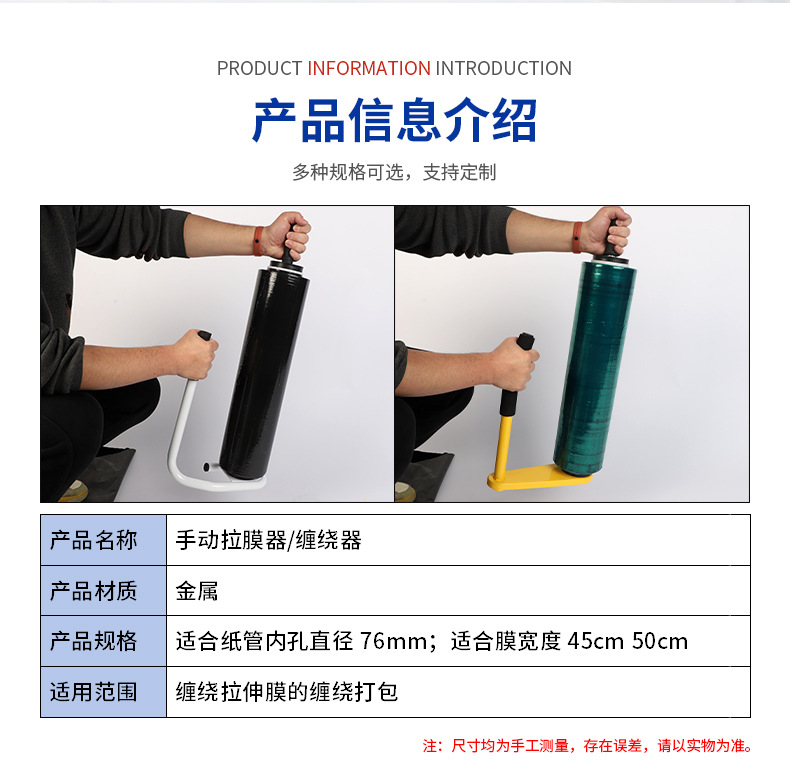 Dispositivo de película manual, bobinador, máquina de película estirable blanca manual, dispositivo de película estirable amarillo, dispositivo de película estirable manual al por mayor