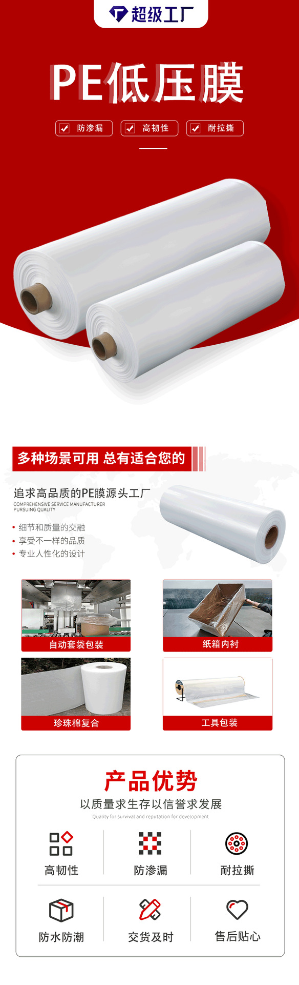 PE película de baja presión de la fábrica de origen de la hoja de mano de grado alimenticio película de aislamiento de po película de plástico blanco lechoso transparente película de hdpe