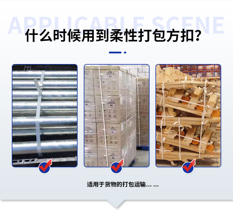 Embalaje flexible hebilla cuadrada fabricante en stock suministro directo cinturón de embalaje flexible cinturón de poliéster flexible cinturón de embalaje hebilla de embalaje de fibra