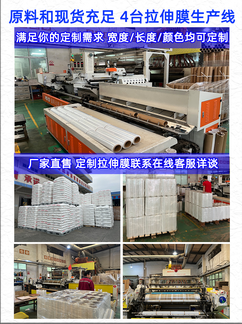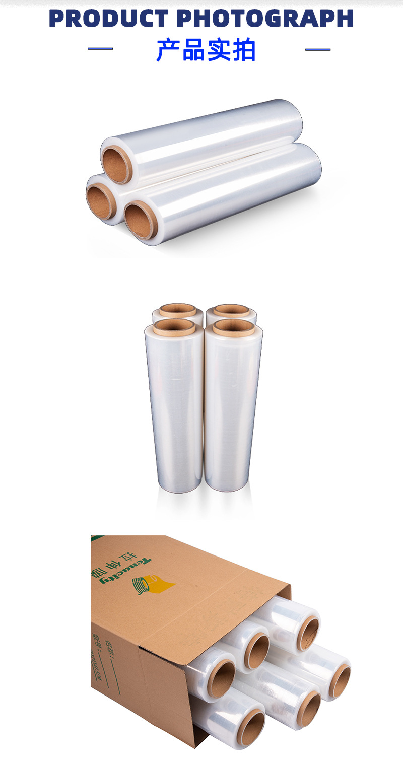 Dongguan película estirable de pelo recto PE película estirable transparente resistente al desgarro película estirable manual industrial FCL película estirable al por mayor