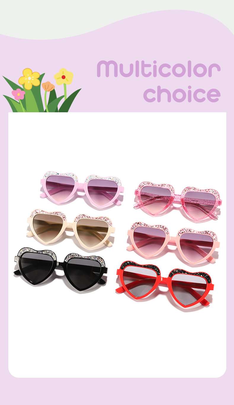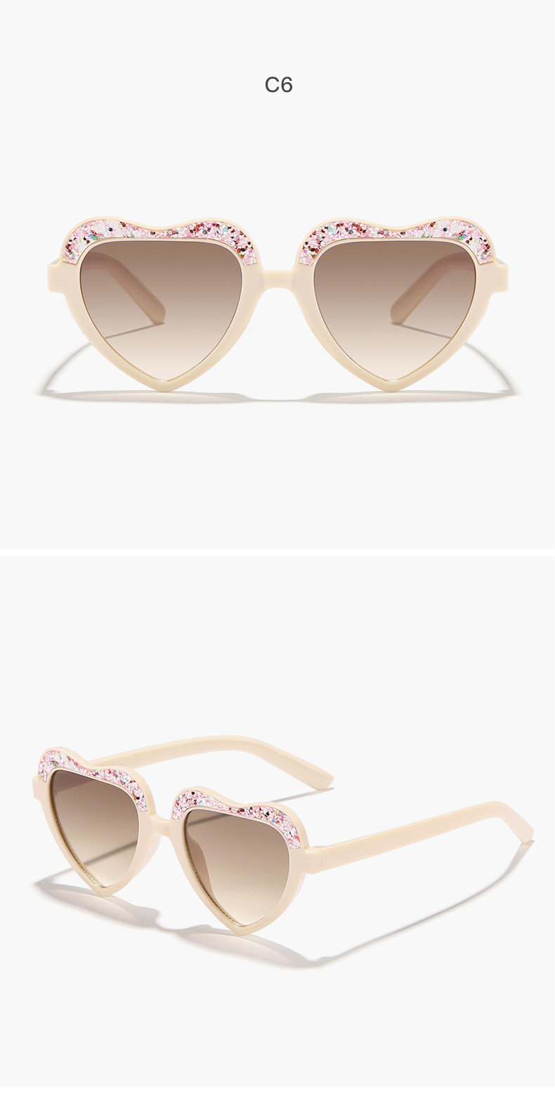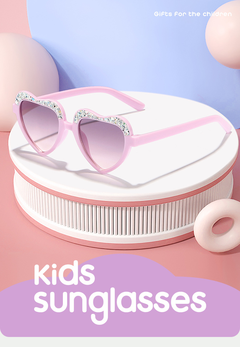 Nuevo estilo para niños, color caramelo fino, marco de amor, gafas de sol para exteriores, gafas de sol para niños y niñas, decoración de escenario personalizada, gafas de sol